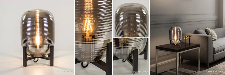 Deze leuke smokey tafellamp is precies wat we allemaal zoeken binnen de trends van nu. De tafellamp straalt door het grijze glas luxe uit. De ronde glazen kap zorgt voor een sfeervolle verlichting. Het jaren ‘50 gevoel dat het glas van deze tafellamp uitstraalt past zeer goed bij het THINK-palet!