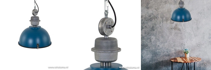 Deze stoere verstelbare blauwe hanglamp is een echte eyecatcher boven de eettafel. Het metaal is gespoten in de nieuwe trendy kleur blauw. Deze industriële hanglamp staat top in de keuken of boven een eettafel of in een trendy tienerkamer voor net die stoere knipoog. prachtig bij de kleur van het jaar van 2019.