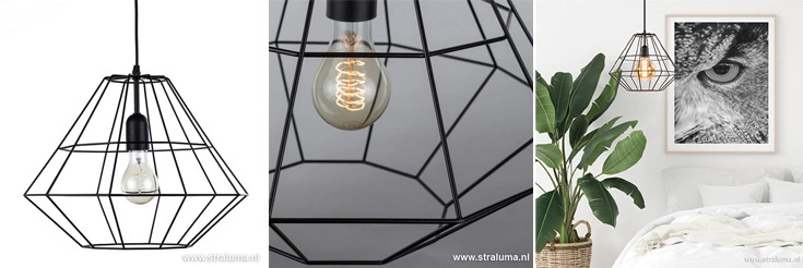Deze leuke grafische draad hanglamp is een blijvertje. Prachtig in een interieur met het THINK-palet. Daar geeft deze diamant hanglamp net een beetje scherpte aan het interieur zonder dat het zwaar voelt.