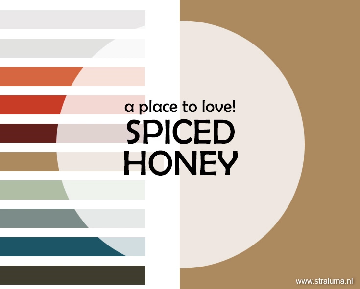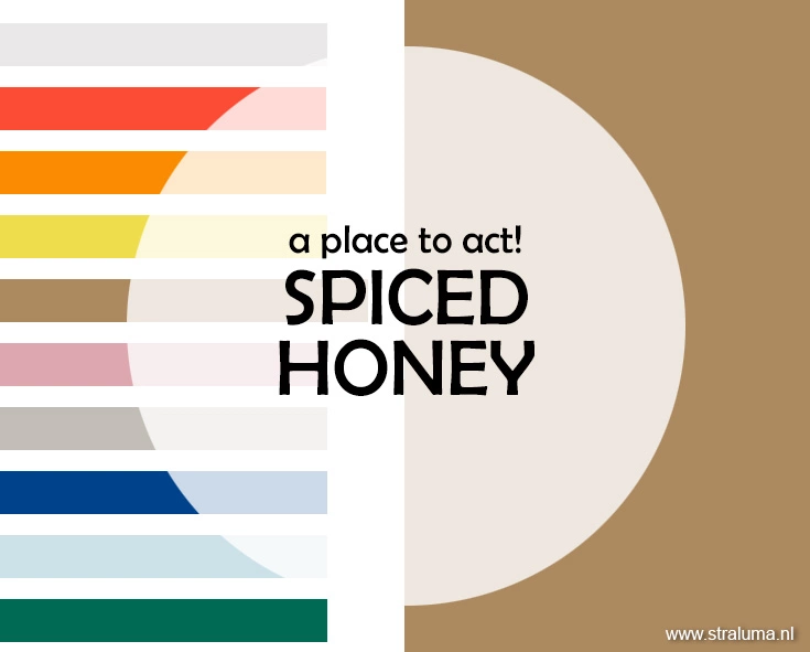 – Heb je geen overvloed aan lef? Dan ga je voor een klein kleurvlak. Een vierkant of cirkel op de muur veranderd de hele sfeer in je interieur.– Met een overdosis lef kies je een paar kleuren en ga je er vol in! Kies bijvoorbeeld spiced honey met heart wood (de Flexa kleur van 2018)– Hou je van subtiel? Met één lijn of meubel maak je al een grote indruk.– Spiced Honey is een prachtige basis kleur. Verf bijvoorbeeld je slaapkamer en creëer een oase van rust.