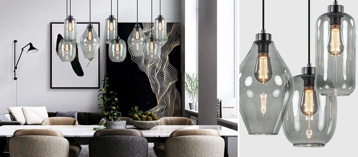 Kies de kap naar keuze, er zijn wel liefst 19 verschillende opties! Van draadkapjes tot kapjes met gaas, van smoke-glas tot amber-glas en van helder-glas tot helder/mat. Kies 1 soort kap, of mix en match verscheidene kappen tot je de perfecte, unieke eettafellamp hebt samengesteld.