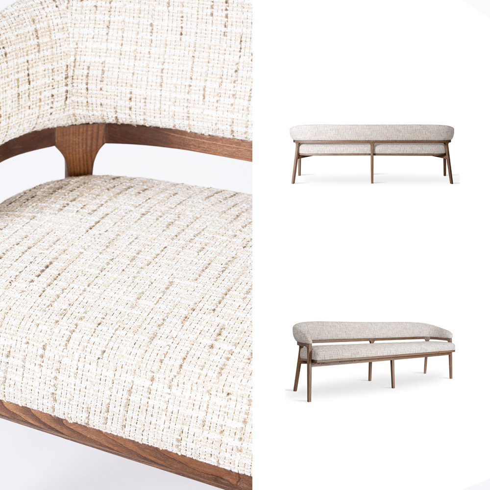 Dory eetkamerbank – stof beige – walnoot onderstel – 215 cm