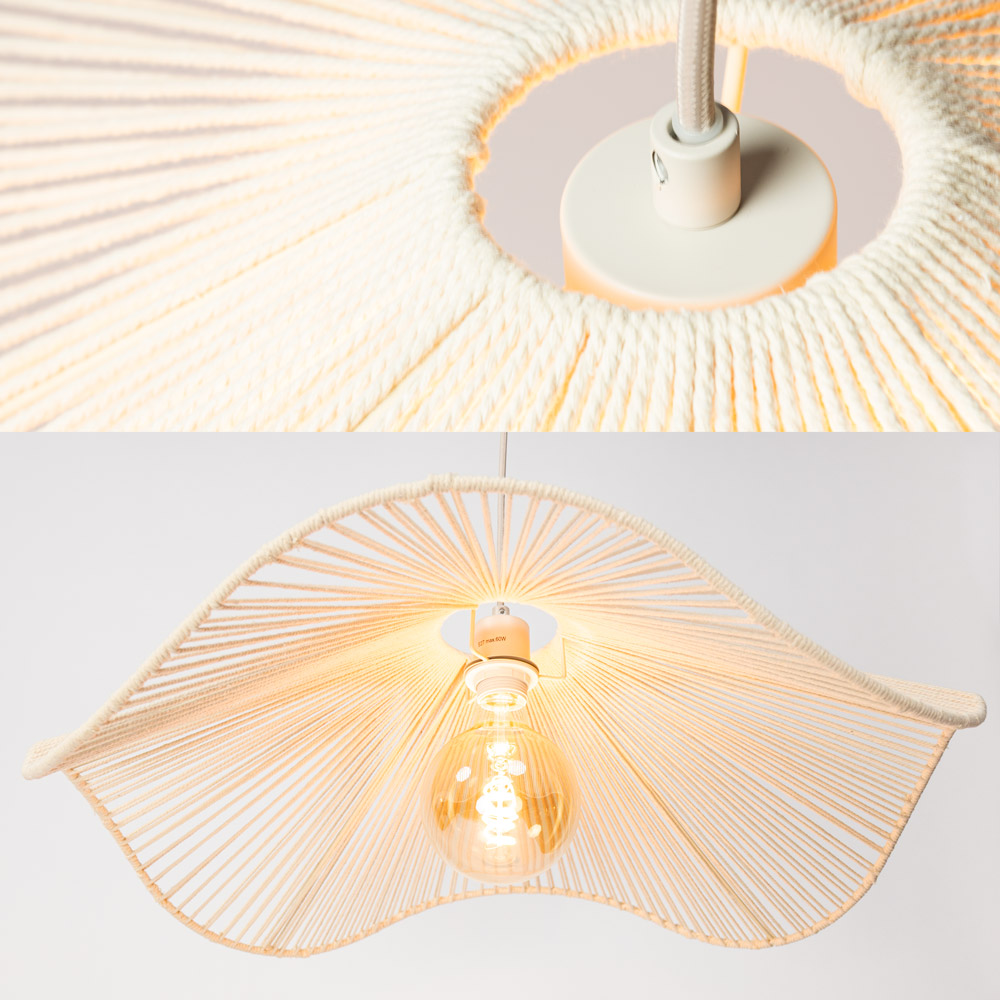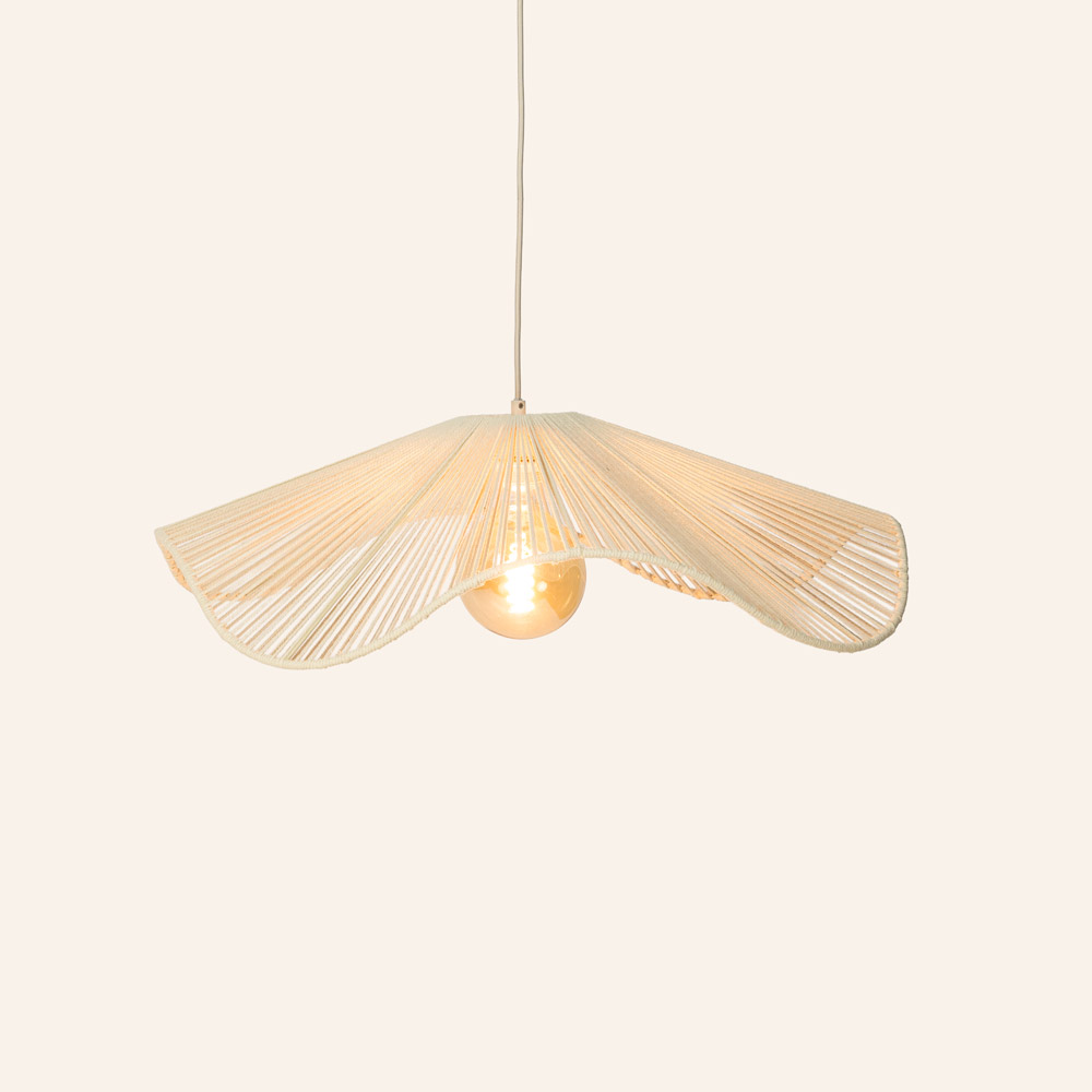 De Rafa hanglamp brengt rust, zachtheid en karakter samen in één opvallend ontwerp. De twee royale kappen met hun golvende vorm en fijne open structuur geven deze lamp een elegante, natuurlijke uitstraling die perfect past binnen een Japandi, Scandinavisch of modern interieur. Door het open ontwerp blijft de lamp ruimtelijk ogen, terwijl hij toch duidelijk aanwezig is als decoratieve blikvanger.