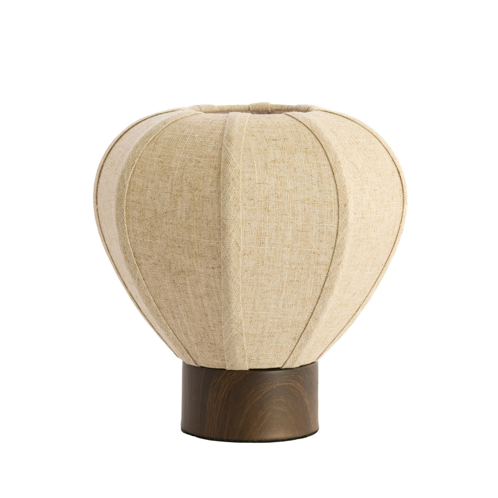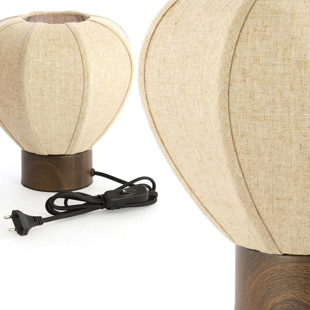 Kyzo tafellamp Japandi – linnen kap met houten voet – Ø23 × H23,5 cm – E27