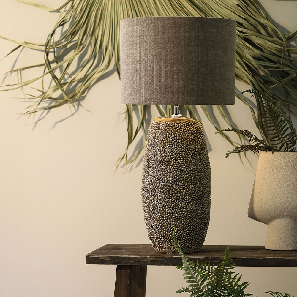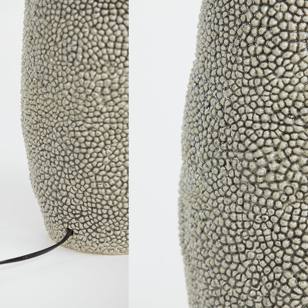De Kyara lampvoet is een elegante basis voor je favoriete lampenkap. Met zijn royale afmetingen en keramieken uitvoering in grijs-bruine tinten straalt hij een warme, natuurlijke sfeer uit. Het subtiele glazuurpatroon geeft de voet een unieke en luxe uitstraling, waardoor hij zowel in moderne als klassieke interieurs tot zijn recht komt.