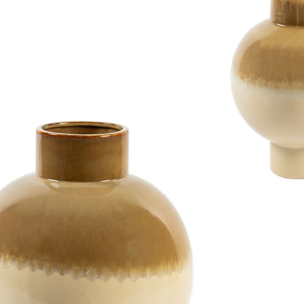 Een stijlvolle blikvanger voor in huis. De Zelata vazen combineren een moderne ronde vorm met een warme bruin-beige glazuurafwerking. De subtiele kleurovergang geeft elke vaas een unieke uitstraling. Mooi als set samen, maar ook krachtig genoeg om solo te shinen — met of zonder bloemen.