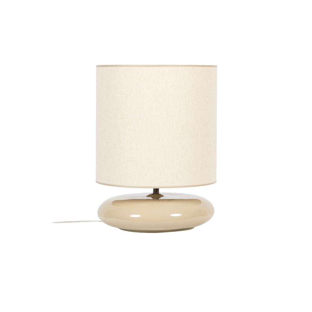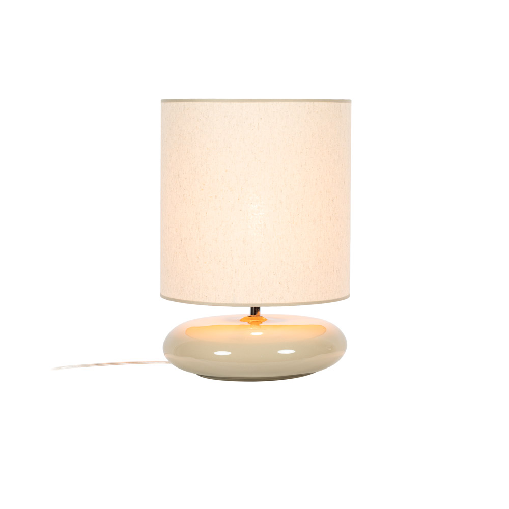 Specificaties • Producttype: Tafellamp • Kleur: Beige / taupe • Materiaal: Keramiek met glanzend glazuur, stoffen kap • Afmetingen: H 42 × Ø 28 cm • Lichtbron: 1× E27 (max. 7 watt, niet inbegrepen) • Snoerlengte: 150 cm