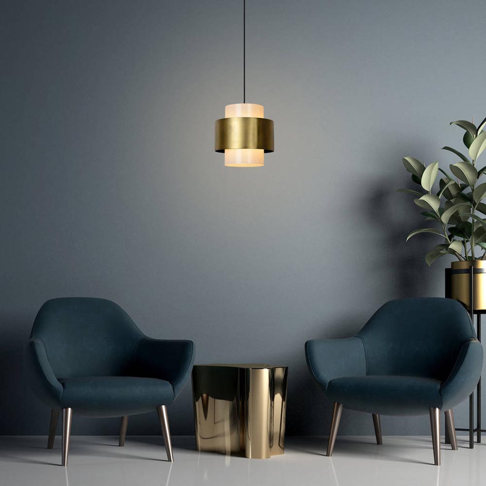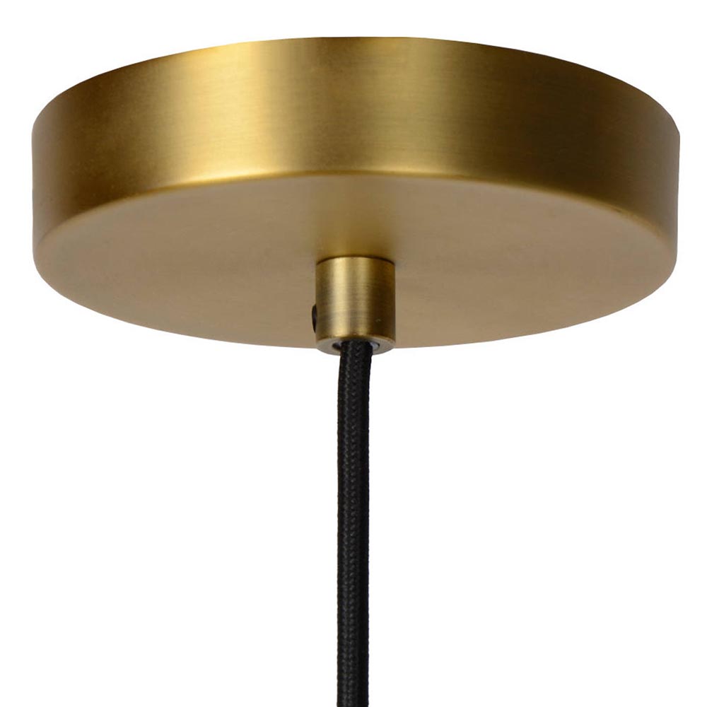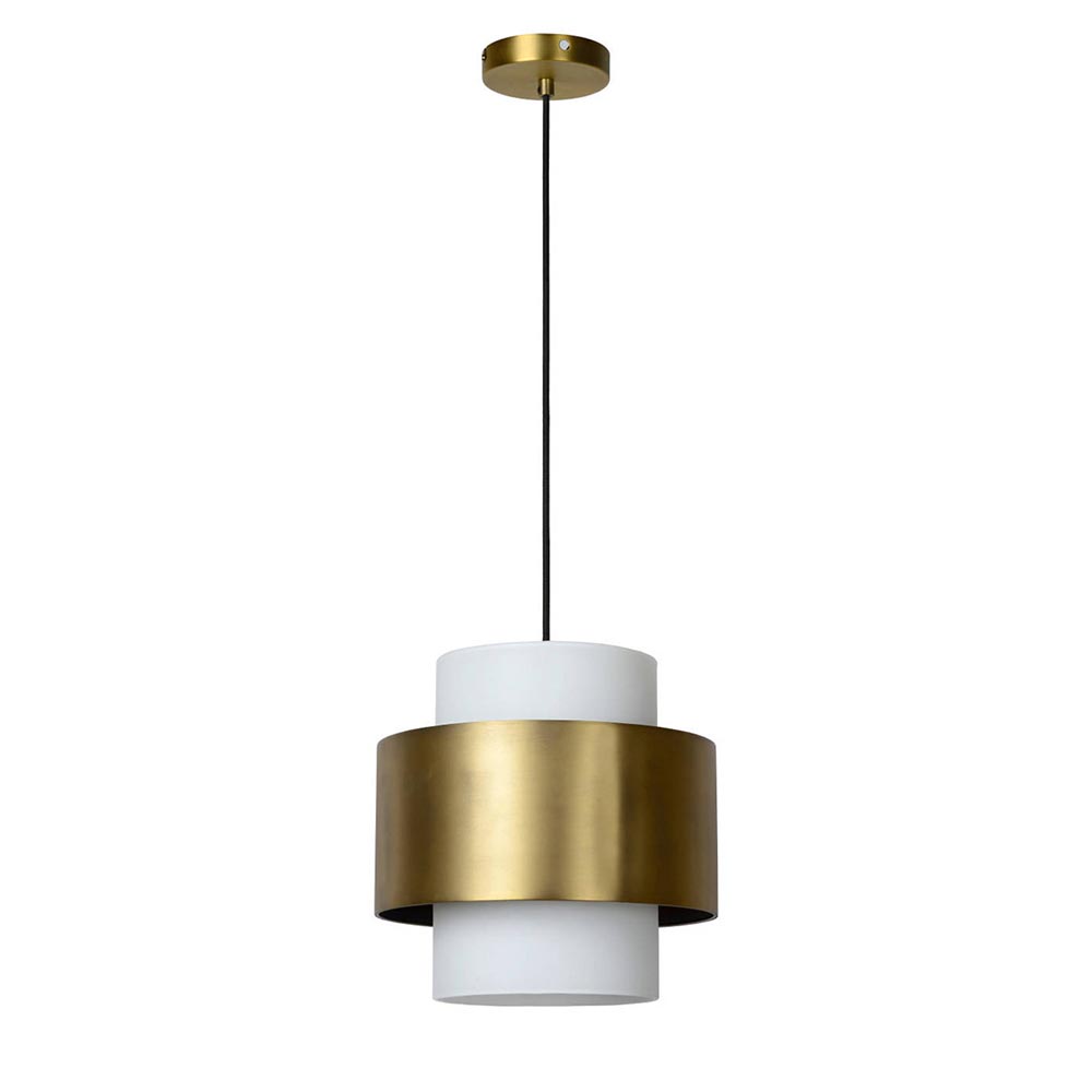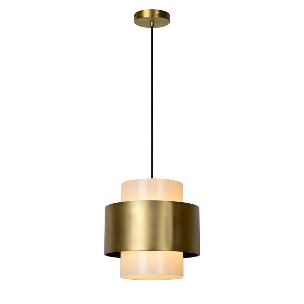 Klassiek met een retro tintje. Deze hanglamp is een verrijking voor het interieur. De hanglamp bestaat uit een cilinder vormige opaal glazen kap met daar omheen een metalen mat gouden ring. Het opale glas zorgt voor sfeervol diffuus licht en tevens dat u niet in de lichtbron kunt kijken. De ronde kap hangt aan een zwart stof omwonden snoer welke naar wens in hoogte is te verstellen. De hanglamp past mooi boven een ronde eettafel, salontafel of als extra sfeerlicht in de woonkamer. De klassieke hanglamp is dimbaar middels een externe dimmer (exclusief).