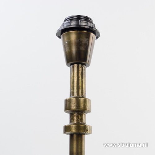 Deze antiek bronzen lampvoet combineert mooi met een klassiek interieur. De voet is te combineren met verschillende kleuren kap en is hier op de foto gecombineerd met een zwarte kap voor een modernere uitstraling. Het brons heeft een antieke afwerking wat de klassieke uitstraling benadrukt.