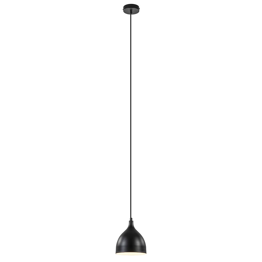 Eenvoudige hanglamp uitgevoerd in metaal en mat zwart gespoten. De binnenkant is wit waardoor het licht goed gereflecteerd wordt. Ideaal lampje voor in de keuken, boven het werkblad, bar of meerdere boven een eettafel.