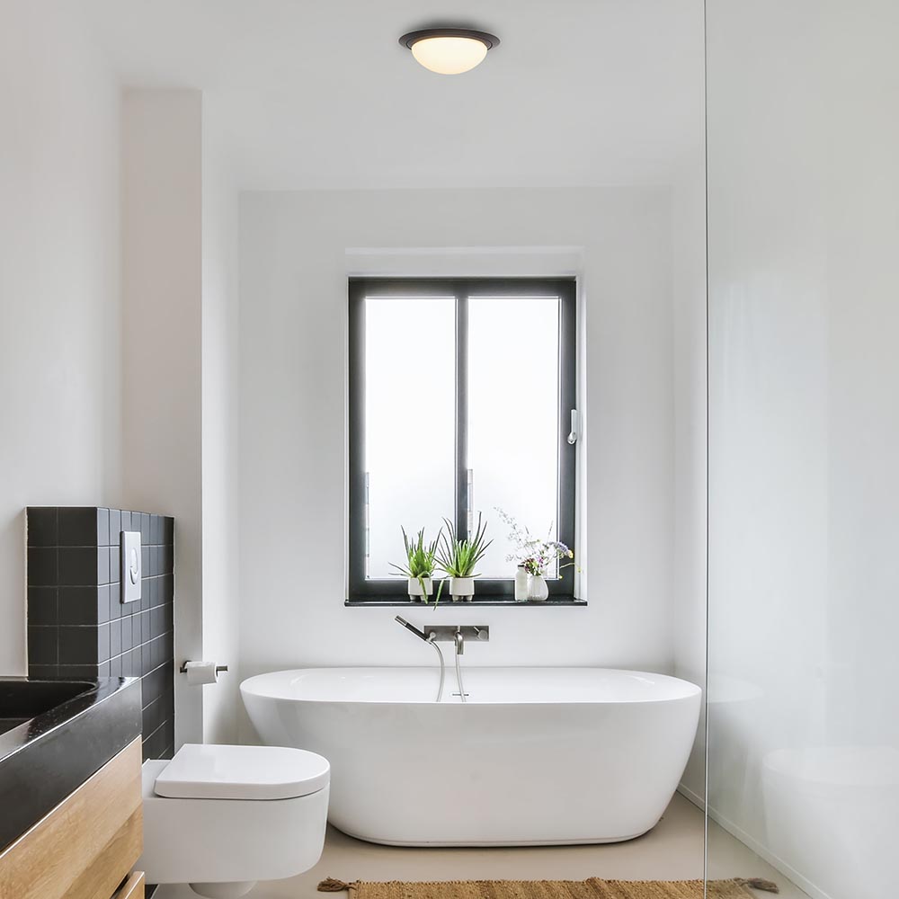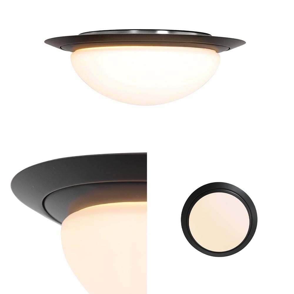 Een klassieke plafonnière in een moderne jasje. De ronde plafondlamp bestaat uit twee delen, de mat zwarte metalen ring en het witte glas. De zwarte plafondlamp is voorzien van LED verlichting waardoor de lamp energiezuinig is en met 960 lumen een prima lichtopbrengst geeft. Voor extra gemak is het LED ook dimbaar middels een 3-standen functie. Hier is geen dimmer voor nodig maar werkt met een gewone wandschakelaar. Per keer dat u de lamp snel achter elkaar aanzet dimt deze naar een volgende stand. Perfect om snel de gewenste sfeer te creëren. De zwarte plafondlamp met wit glas is IP44 goedgekeurd, zodat deze ook in een badkamer kan worden toegepast.
