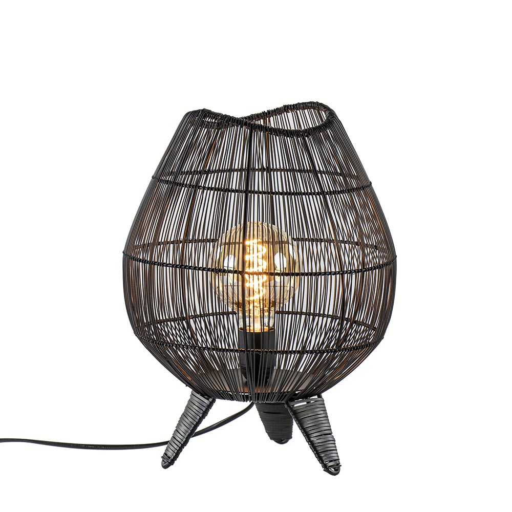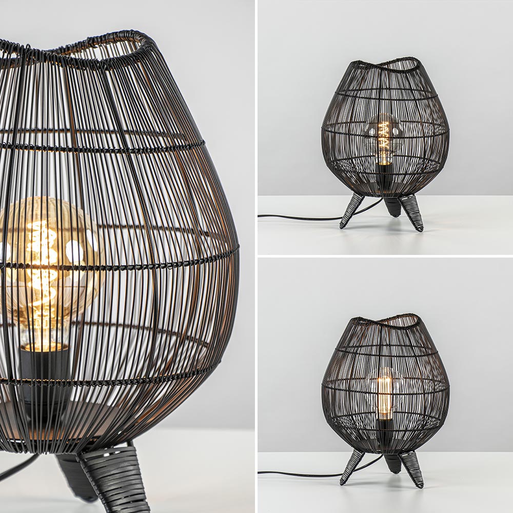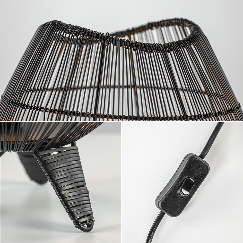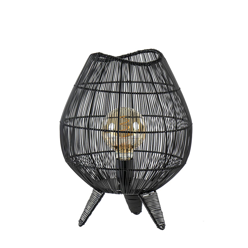 Een leuke sfeervolle tafellamp in een modern jasje. Dit leuke tafellampje staat op 3 kleine pootjes wat een grappig, speels effect geeft. De mat zwarte tafellamp Yumi bestaat uit een zwart frame waar doorheen zwarte metaaldraden gevlochten zijn. Deze tafellamp van Light and Living is voorzien van een zwart snoer met een aan/uit knopje. Deze lamp past mooi op een dressoir of bijzettafel.
