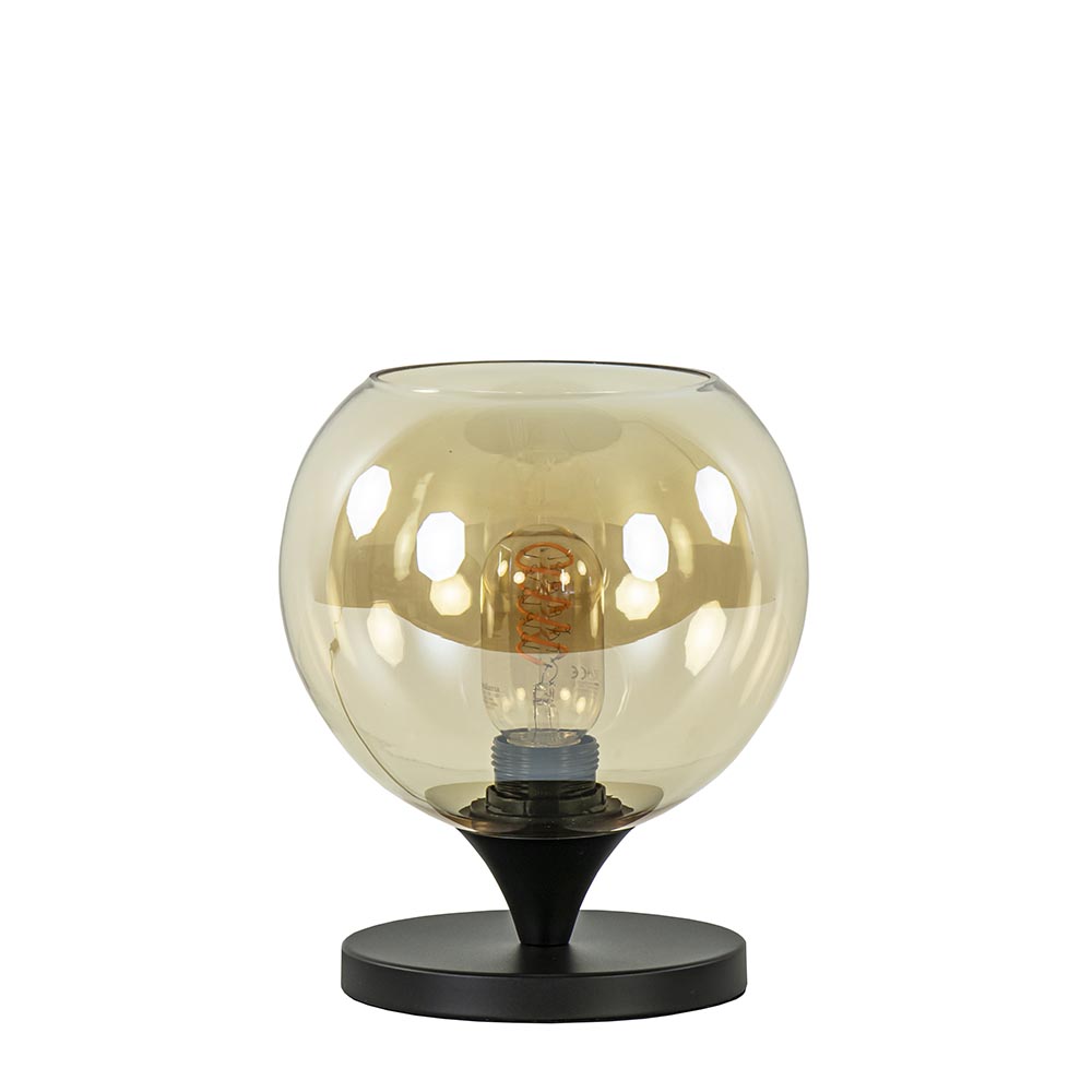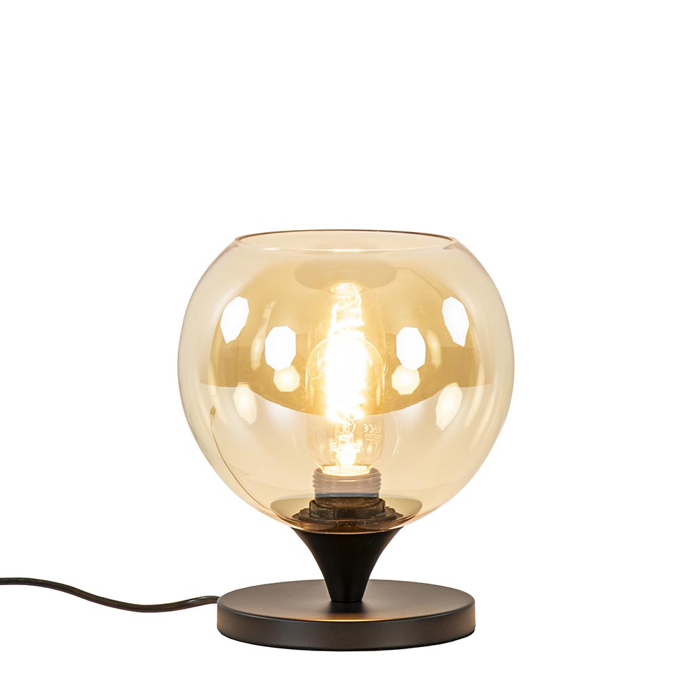 Kleine tafellamp zwart met amber glazen bol 20 cm