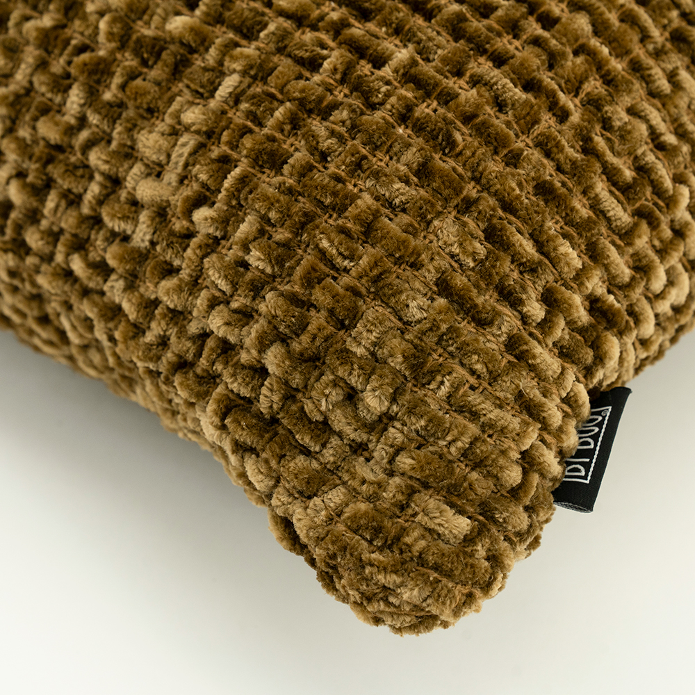 Het “Hyde” kussen in mosterdgeel brengt dankzij de rijke chenille-achtige pool direct een warm accent en speelse textuur in je interieur.