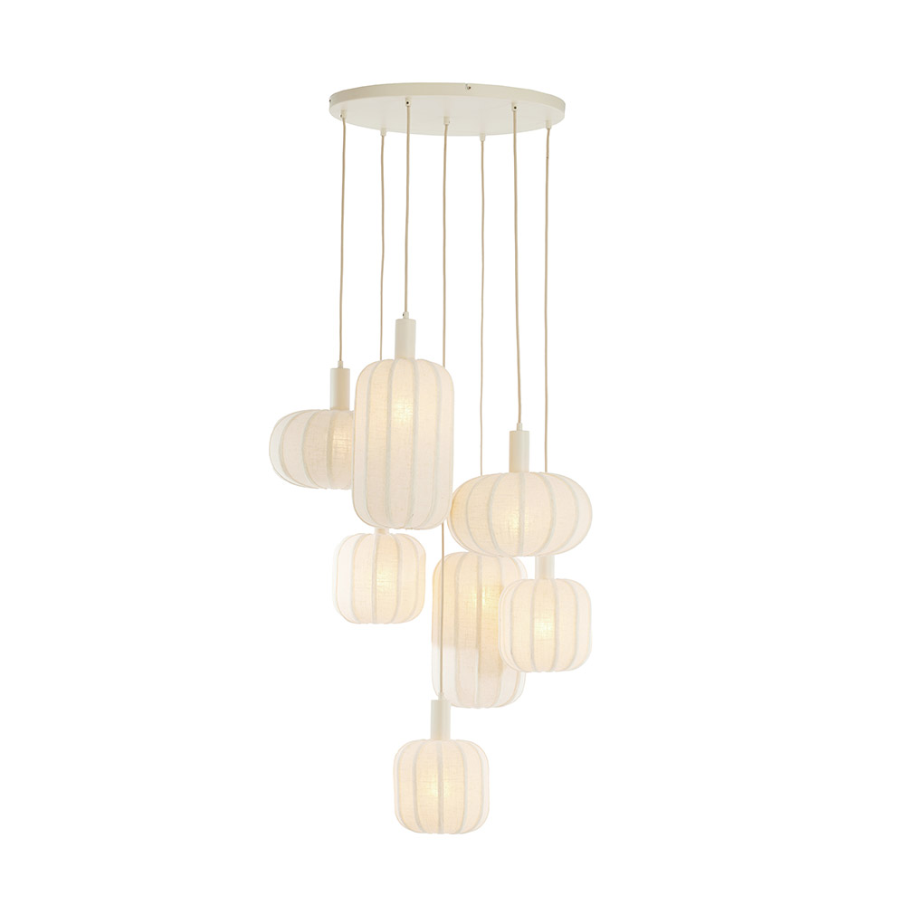 Tufia hanglamp – Linnen crème – 7-lichts – E27