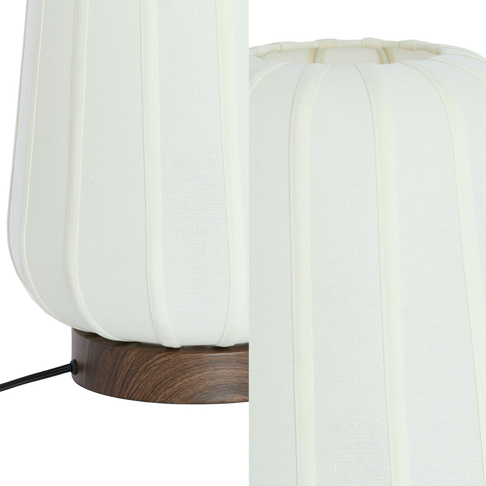 De tafellamp Bibury brengt warmte en gezelligheid in huis met zijn elegante combinatie van een donkerbruine houtprint en een frisse witte kap. Het grotere formaat van Ø30 × H41,5 cm maakt deze uitvoering een echte blikvanger op een dressoir, bijzettafel of nachtkastje.