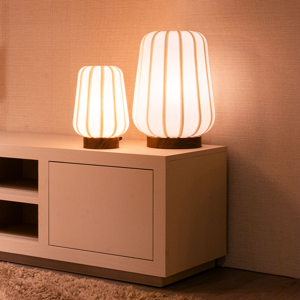 Lampion vormige wabi sabi tafellamp bibury bruin/wit large