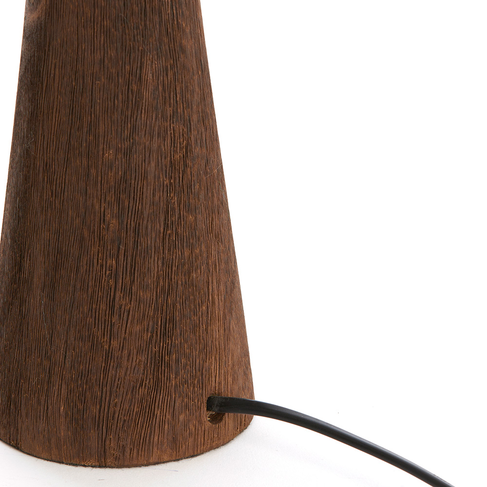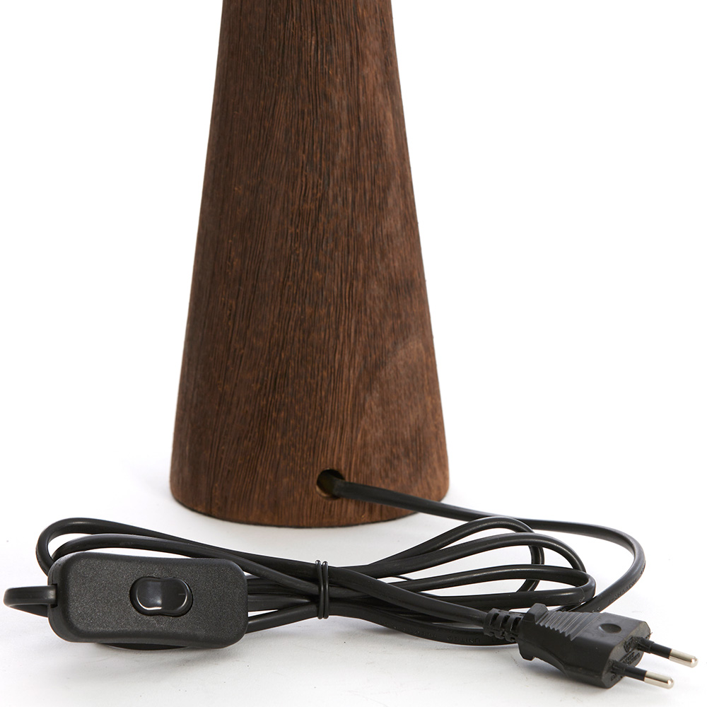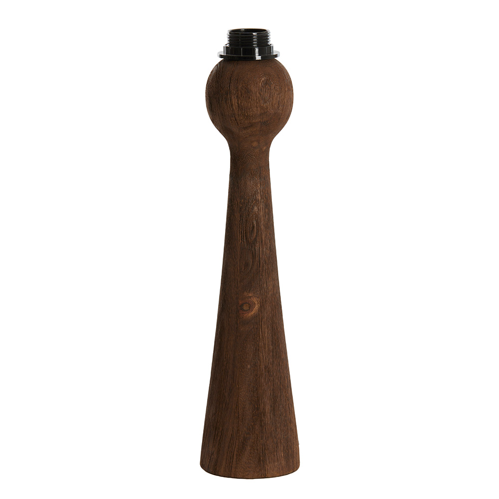 Deze lampvoet heeft een verfijnde en elegante uitstraling met een eigentijds ontwerp. Gemaakt van donker hout, biedt de slanke, conische vorm een modern contrast met de natuurlijke textuur van het materiaal. De houten voet heeft een rijke, warme tint die een luxe uitstraling geeft aan je interieur. Het ontwerp is minimalistisch, met een subtiele ronding aan de bovenkant die overgaat in een stevige voet. Het is de perfecte basis voor een lampenkap, ideaal voor het creëren van een sfeervol accent in je woonkamer, slaapkamer of studeerkamer. De voet is voorzien van een snoer met schakelaar voor extra gebruiksgemak.