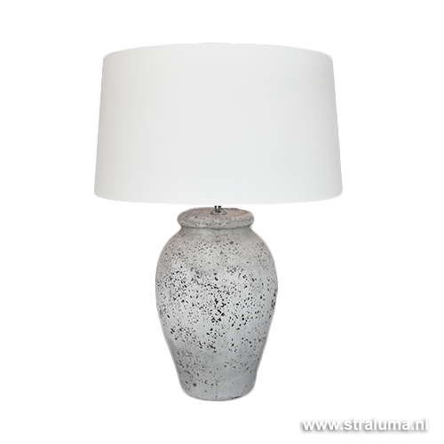 Deze stenen lampvoet staat prachtig in een industriële en landelijke inrichting. De Vulsini tafellamp heeft een licht verweerde look wat hem een stoere uitstraling geeft. De creme/grijze kleur maakt hem uitstekend te combineren met diverse kleuren lampenkappen. Door de lampvoet te combineren met een lampenkap uitgevoerd in taupe of grijs krijgt het geheel een stijlvolle uitstraling die super staat in bijvoorbeeld een landelijk of lifestyle interieur. Maar denk eens out-of-the-box en combineer de lampvoet eens met een aqua-blauwe of cassiskleurige kap. Let u er bij het bestellen wel op dat u de lampvoet en kap afzonderlijk van elkaar dient te bestellen.