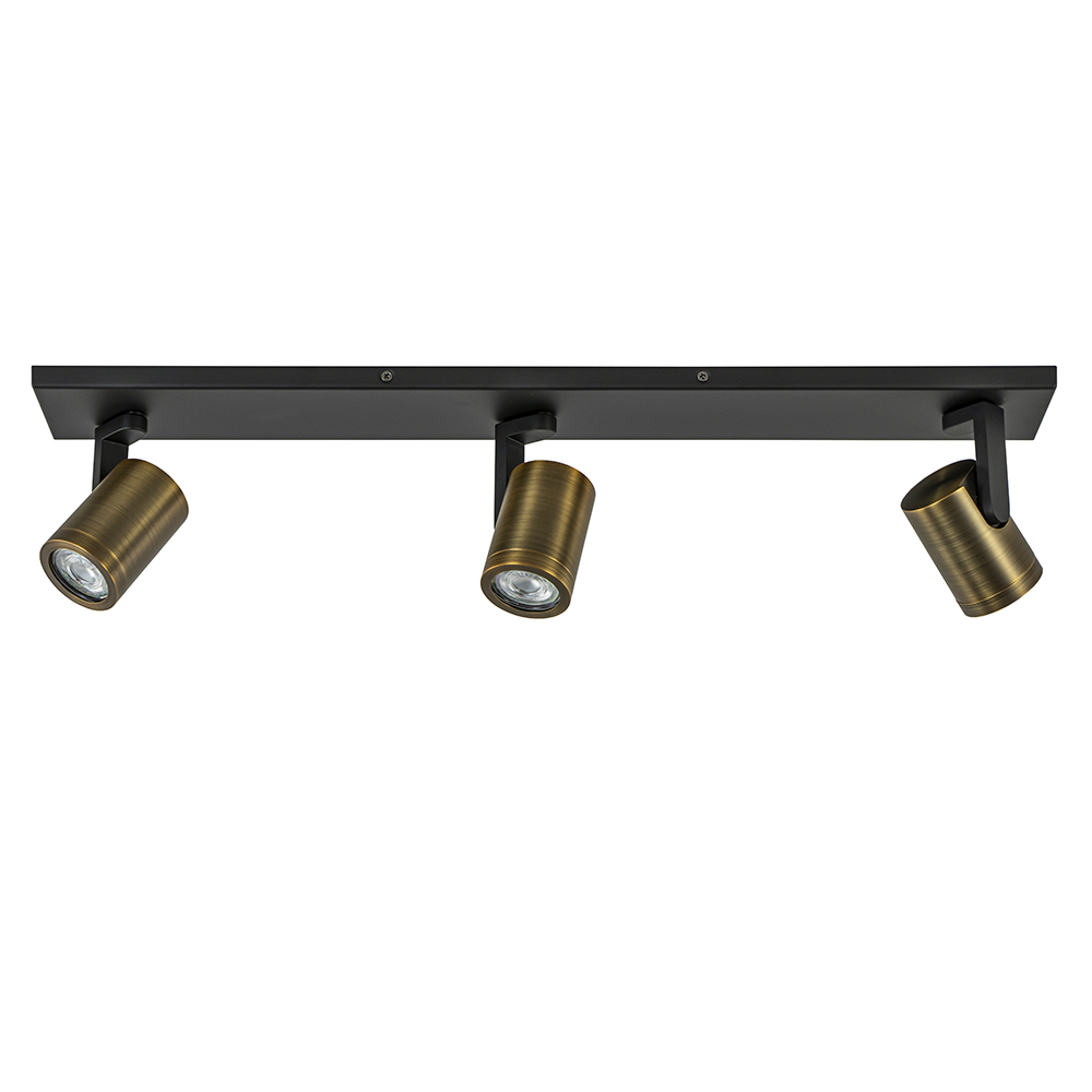 – afm: 65×9,5×15 cm – bevestiging: 65×9,5×1,5 cm – kappen: Ø6×8,5 cm – metaal – mat zwart/brons – verstelbaar – exclusief lichtbron (3x GU10) – dimbaar (exclusief)