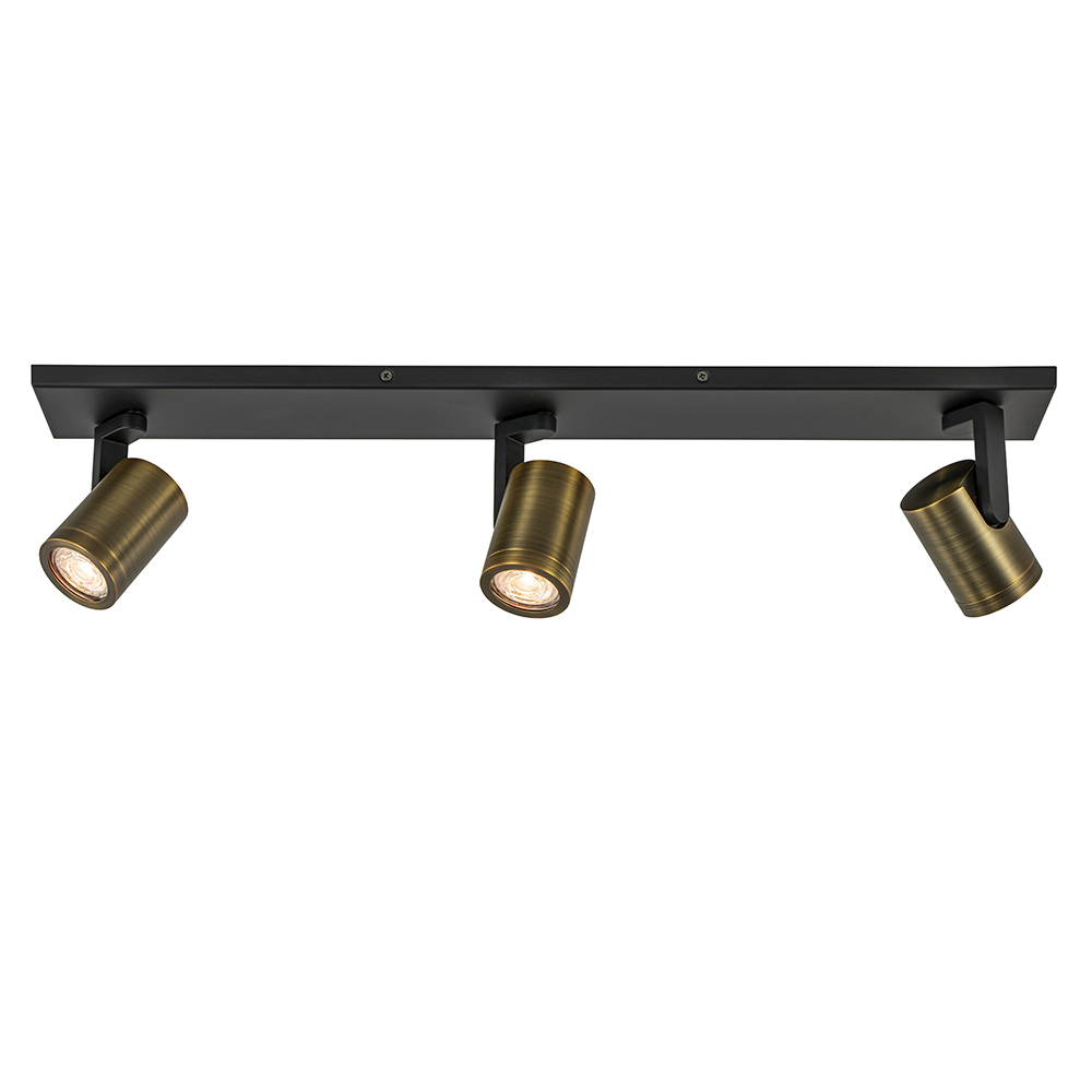 / Lampen / Opbouwspots / Langwerpige plafondspot 3-lichts mat zwart met brons