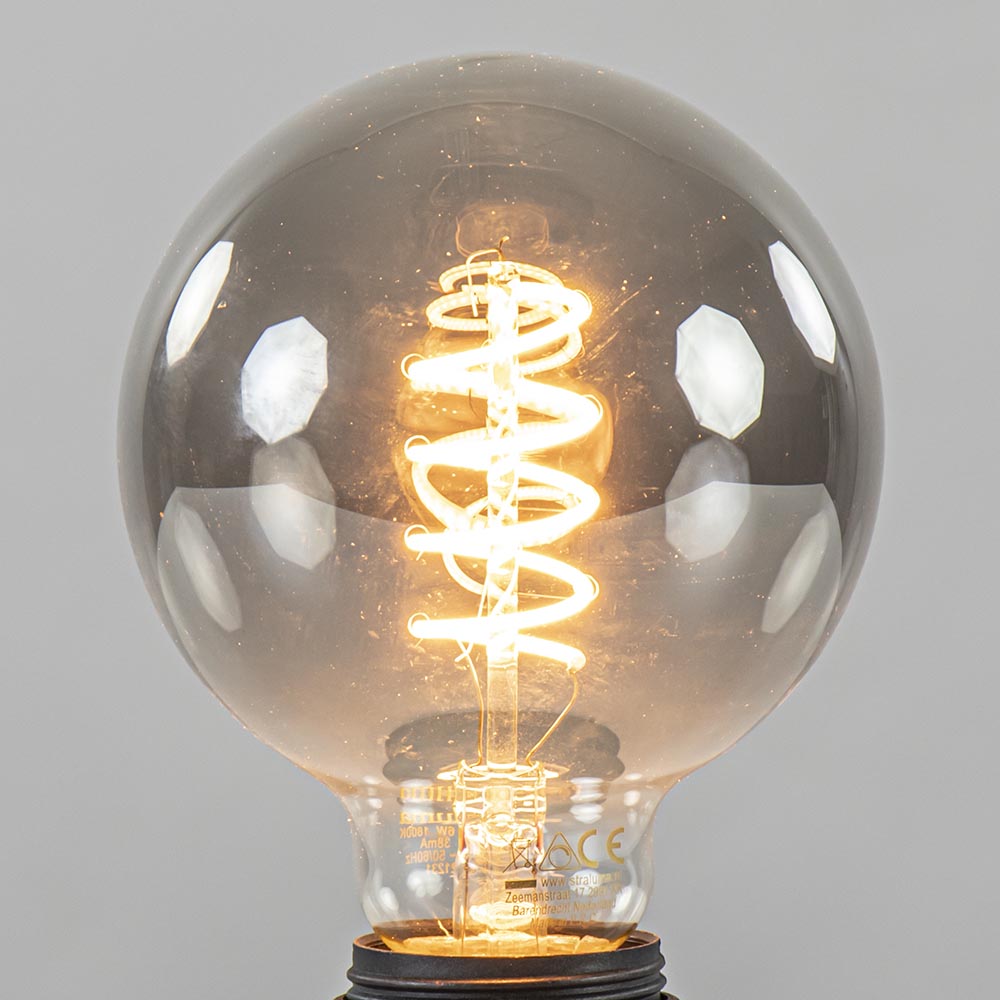 Een mooie LED lichtbron met sfeervol titanium glas. Het donkere glas geeft een moderne en luxe uitstraling. Let er echter wel op dat het donkere glas de lichtopbrengst wat beperkt. Deze G95 LED lichtbron is dimbaar met een LED-dimmer.