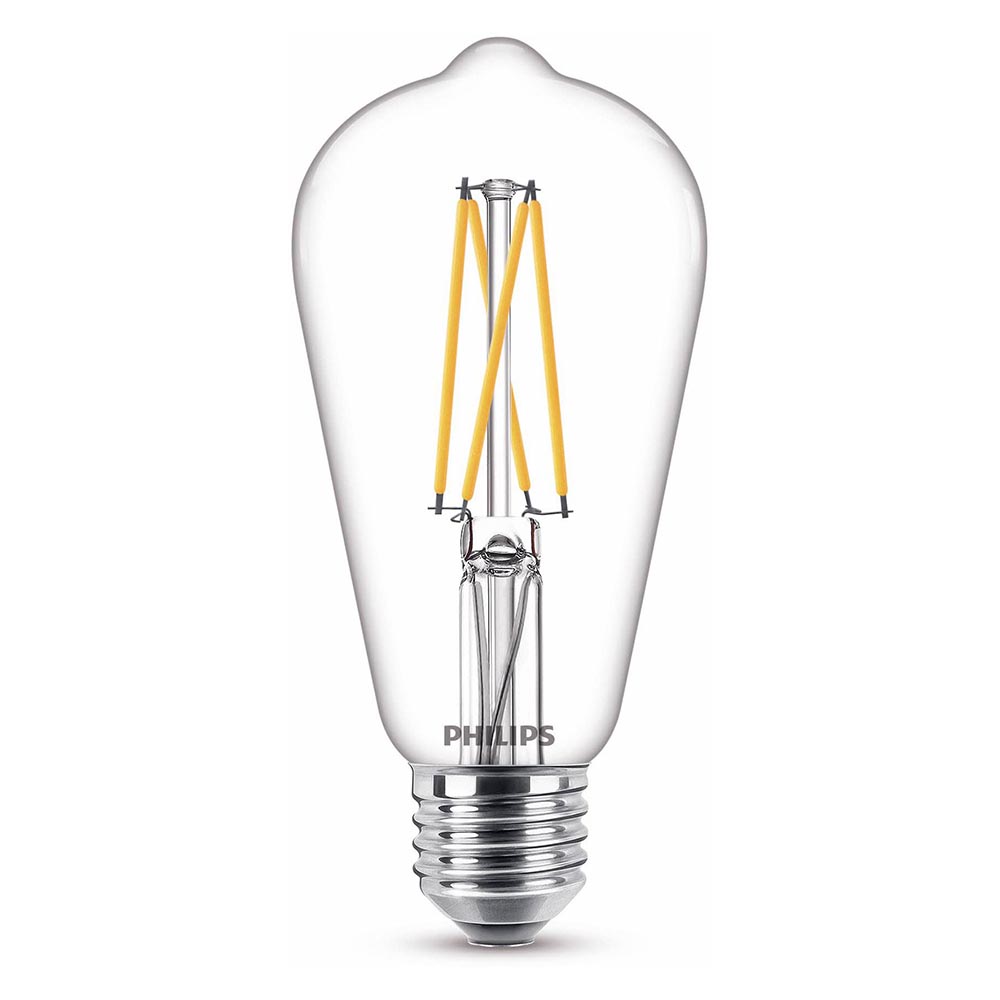 De klassieke peer lichtbron in een modern jasje. De heldere ST64 LED lichtbron heeft een E27 fitting en geeft een warm witte verlichting. Door de warm glow techniek geeft de lichtbron bij het dimmen nog warmer licht. De LED peer geeft met 806 lumen veel licht.