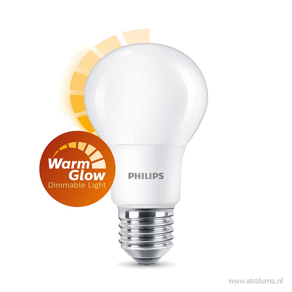 Dimbare LED lichtbron van Philips. Kan in diverse armaturen toegepast worden. Geeft een warme kleur licht en is dimbaar. De bron heeft mat glas.