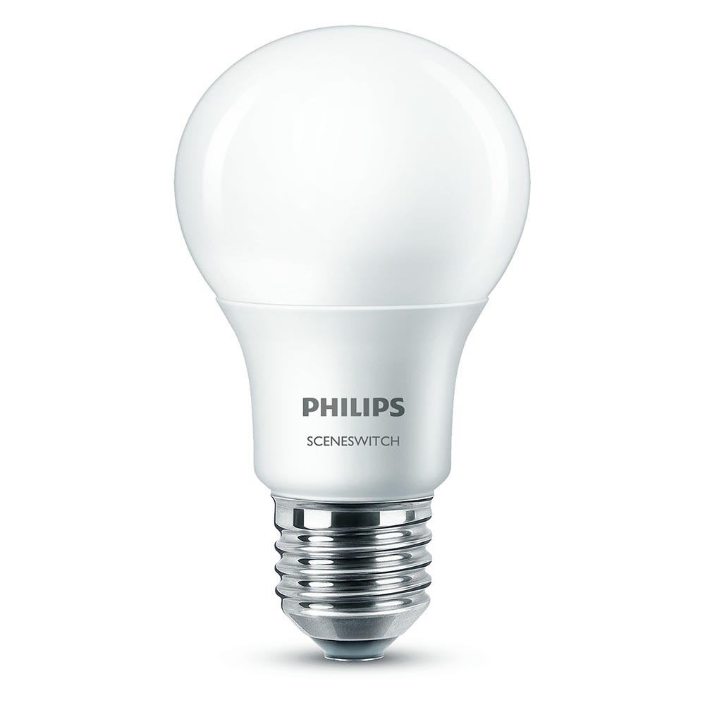 Bepaal zelf je eigen sfeer met de Philips SceneSwitch gewoon met je bestaande lichtschakelaar en deze lichtbron. Je hebt meerdere lichtinstellingen zonder dimmer of lastige intallatie. Druk je schakelaar aan en uit en je krijgt een andere sfeer. Bovendien heeft de lamp een automatisch geheugen dankzij een ingebouwde geheugenchip, waardoor de lamp je laatste instelling onthoudt als de lichtschakelaar langer dan 6 seconden wordt uitgeschakeld.