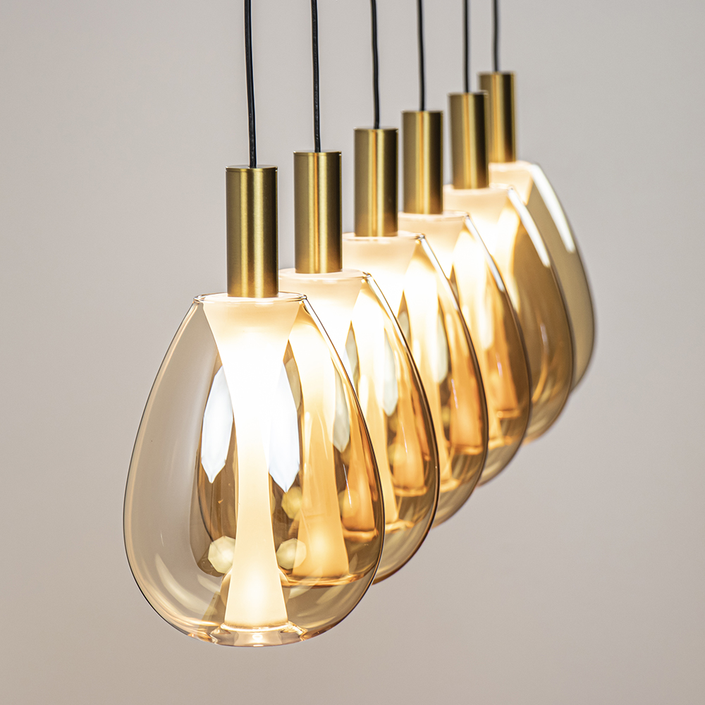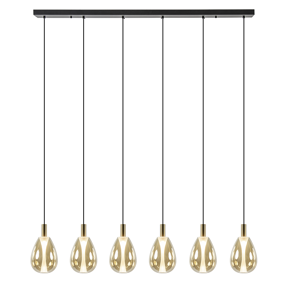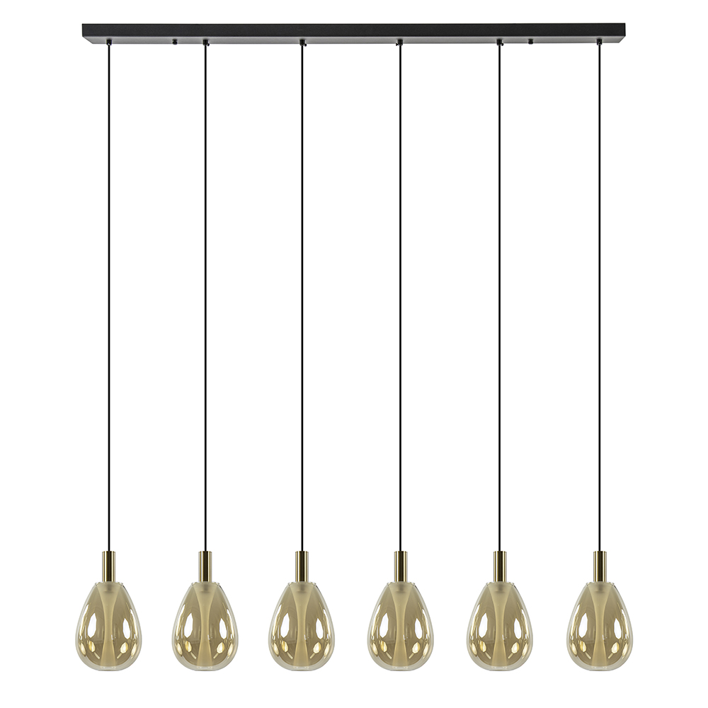 Homepagina / Lampen / Eettafellampen / LED eettafelhanglamp 6-lichts amber glas met zwart en brons