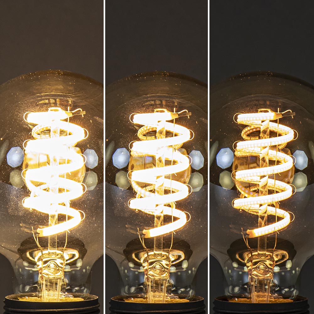 Deze decoratieve lichtbron is een perfecte toevoeging aan uw lamp. De globe LED lichtbron heeft een doorsnede van 95mm en is voorzien van een 3-standen dimfunctie. Dit werkt gemakkelijk met een gewone schakelaar. U heeft dus geen externe dimmer nodig. Zodra u de lamp aanzet begint deze in de felste stand. Per keer dat u de schakelaar aan en weer uit zet dimt de lamp een stap verder. Laat u een stand wat langer staan dan wordt deze onthouden dmv de memory functie. De LED lamp heeft een decoratieve spiraal en is uitgevoerd in het goud.