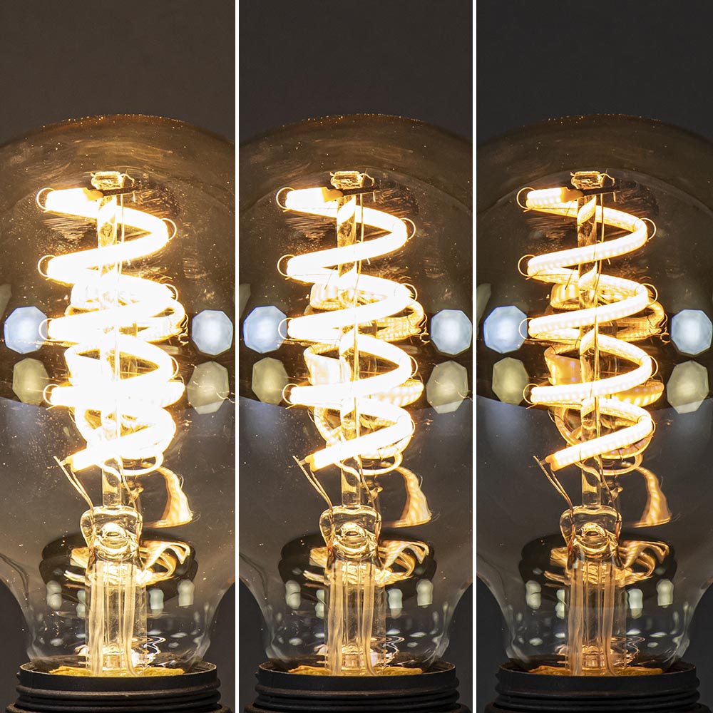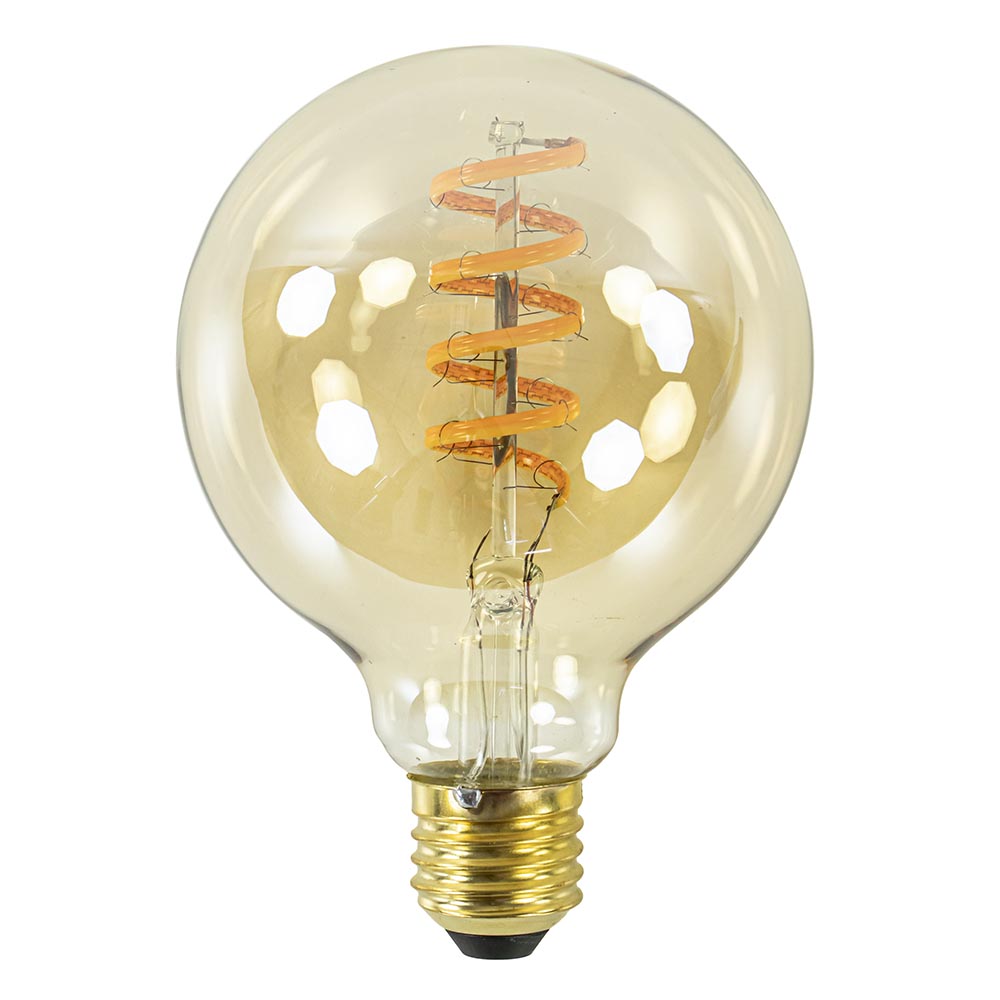 Deze decoratieve lichtbron is een perfecte toevoeging aan uw lamp. De globe LED lichtbron heeft een doorsnede van 95mm en is voorzien van een 3-standen dimfunctie. Dit werkt gemakkelijk met een gewone schakelaar. U heeft dus geen externe dimmer nodig. Zodra u de lamp aanzet begint deze in de felste stand. Per keer dat u de schakelaar aan en weer uit zet dimt de lamp een stap verder. Laat u een stand wat langer staan dan wordt deze onthouden dmv de memory functie. De LED lamp heeft een decoratieve spiraal en is uitgevoerd in het goud.