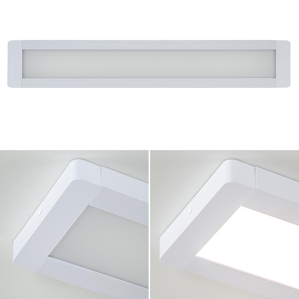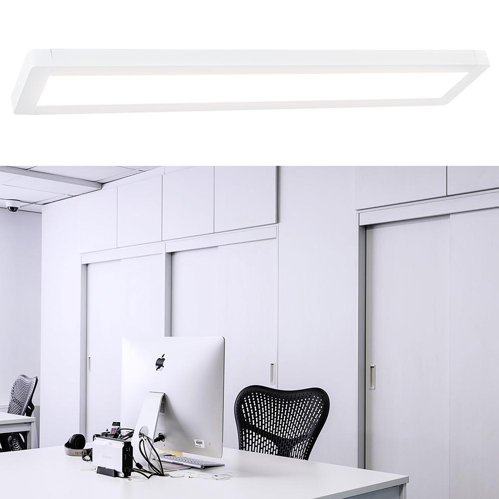 Ideaal voor in een hal, kantoor of ruimte met een laag plafond. Deze LED plafondlamp heeft een hoogte van maar 3 cm. Het witte LED paneel heeft een minimalistisch ontwerp en valt zo vrijwel niet op. Het witte LED paneel kan zowel als plafond- en wandlamp worden gebruikt. De LED lamp geeft met 3000 Kelvin een sfeervolle warm witte verlichting en met 4320 lumen een flinke lichtopbrengst.