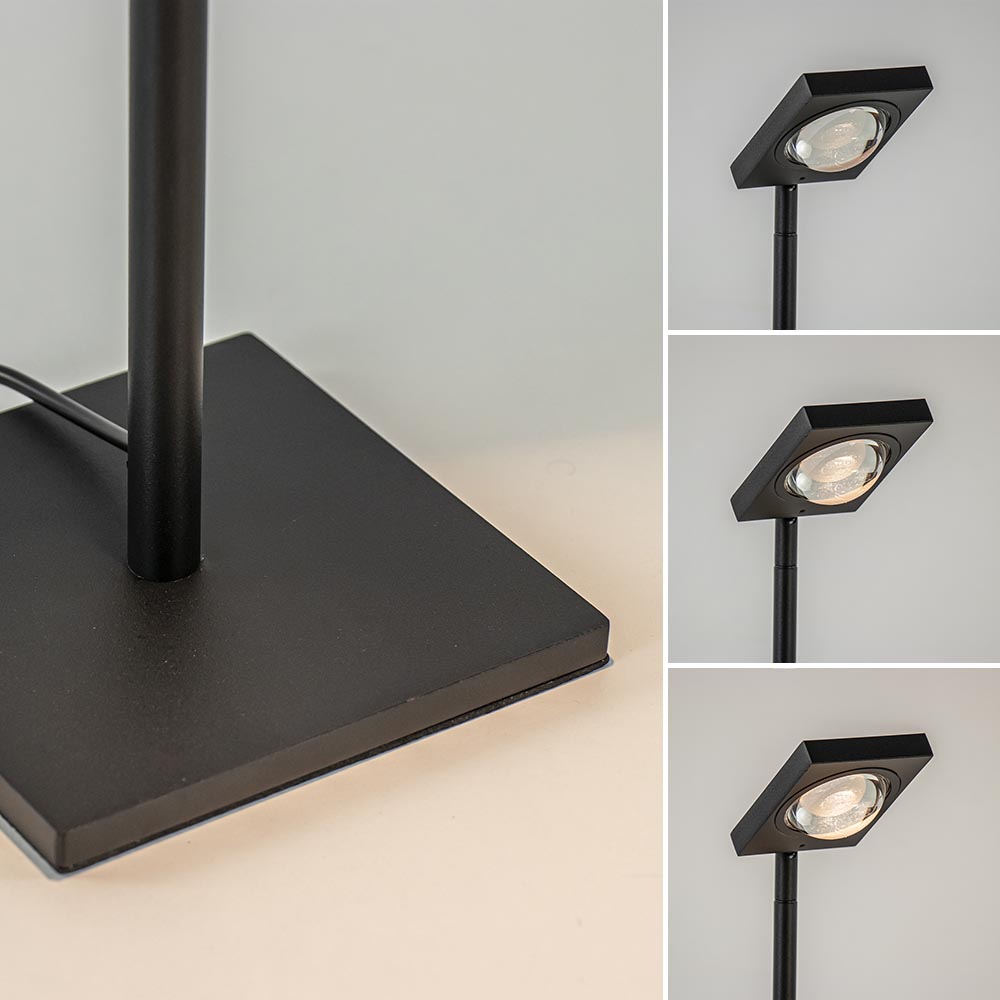 – afm: 12x12x40 cm – kap: 8x10x3 cm – voet: 12x12x1 cm – metaal – zwart – inclusief LED – 782 lumen – 2700 Kelvin – verstelbaar – zwart snoer: 195 cm