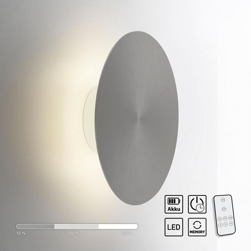 Deze moderne wandlamp is een verrijking voor het interieur. De LED wandlamp is zowel functioneel als effectief en is gemakkelijk is diverse ruimtes te gebruiken. De wandlamp werkt namelijk op een accu en is daardoor overal op te hangen. De ronde wandlamp is gemakkelijk te verwijderen van de wandbeugel zodat deze weer kan worden opgeladen met de meegeleverde USB kabel. De plaat op de wandlamp is uitgevoerd in het grijs waarbij de verlichting aan de achterzijde is gemonteerd. Dit zorgt voor een sfeervol effect op de ondergrond. De LED lamp is in 3-standen te dimmen en is voorzien van een timerfunctie. De accu wandlamp heeft een accuduur van 7-40 uur en is gemakkelijk te bedienen met de meegeleverde afstandsbediening.