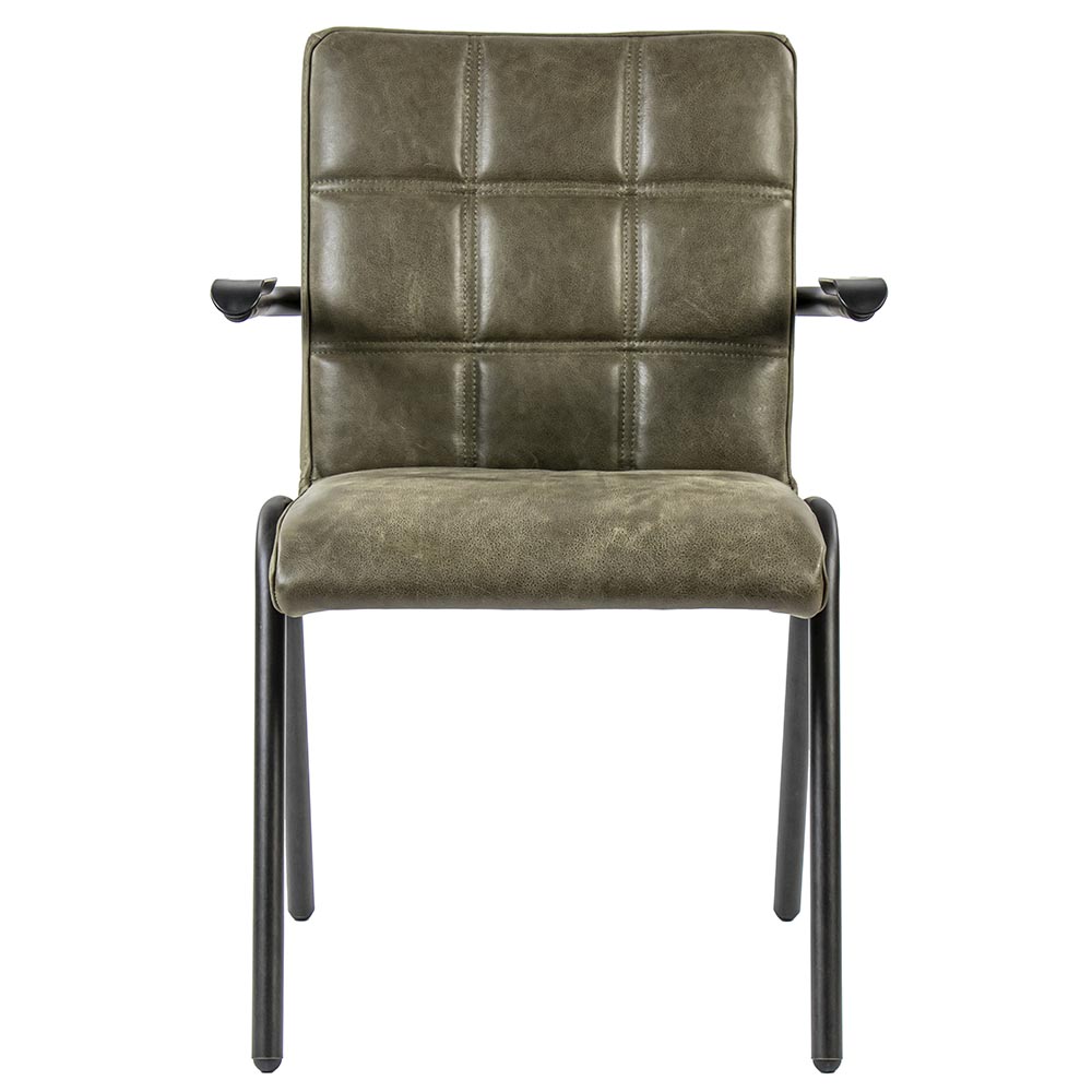 / Wonen / Eetkamerstoelen / Lederen armstoel olijf groen met zwart metalen pootjes