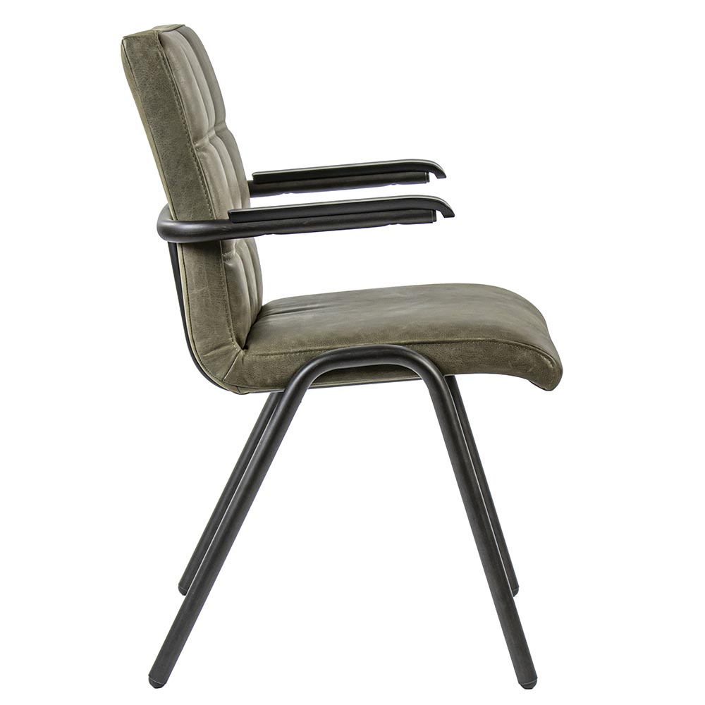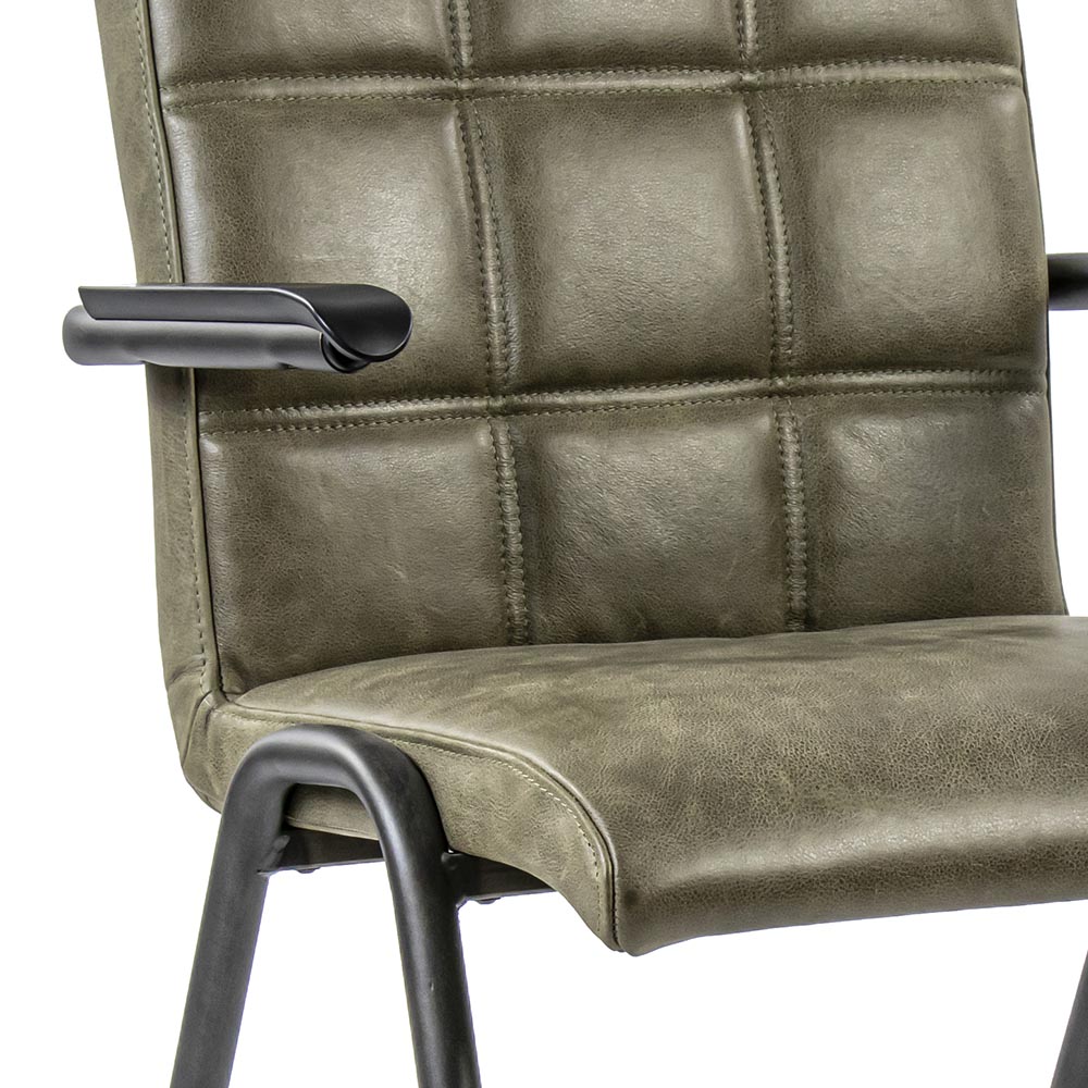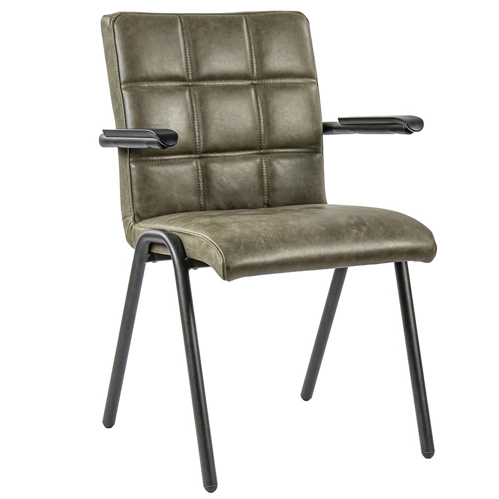 Homepagina / Wonen / Eetkamerstoelen / Lederen armstoel olijf groen met zwart metalen pootjes
