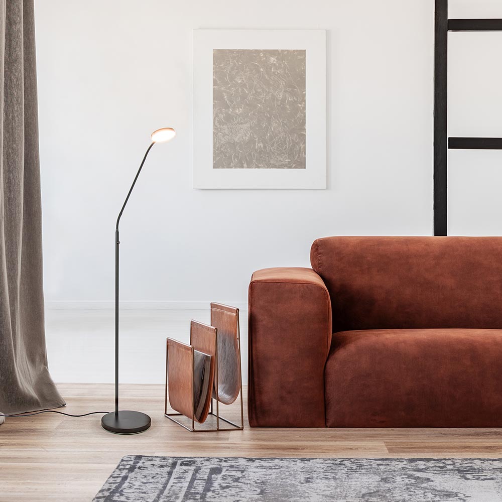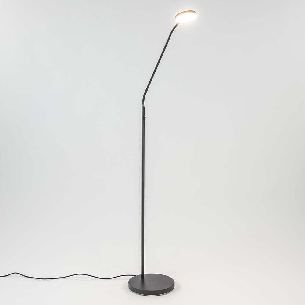 De ideale leeslamp voor naast uw favoriete stoel of leesplekje op de bank. De metalen vloerlamp is uitgevoerd in het zwart wat mooi past in een strak klassiek of modern interieur. De leeslamp is voorzien van LED welke met een dim-to-warm functie is te dimmen. Dit houdt in dat de lamp dimt in intensiteiet en in warmte. Ideaal wanneer u wilt lezen of net even wat extra sfeer wilt aanbrengen in huis. De dimmer bevindt zich middenop het armatuur en werkt gemakkelijk door deze ingedrukt te houden. De LED vloerlamp is verder op 3 plekken te verstellen zodat u de lamp zo kunt plaatsen dat u het meeste comfortabel kunt lezen en geeft met 1400 lumen ook voldoende licht voor de kleine lettertjes. De LED leeslamp is verkrijgbaar het het brons, nikkel en zwart.