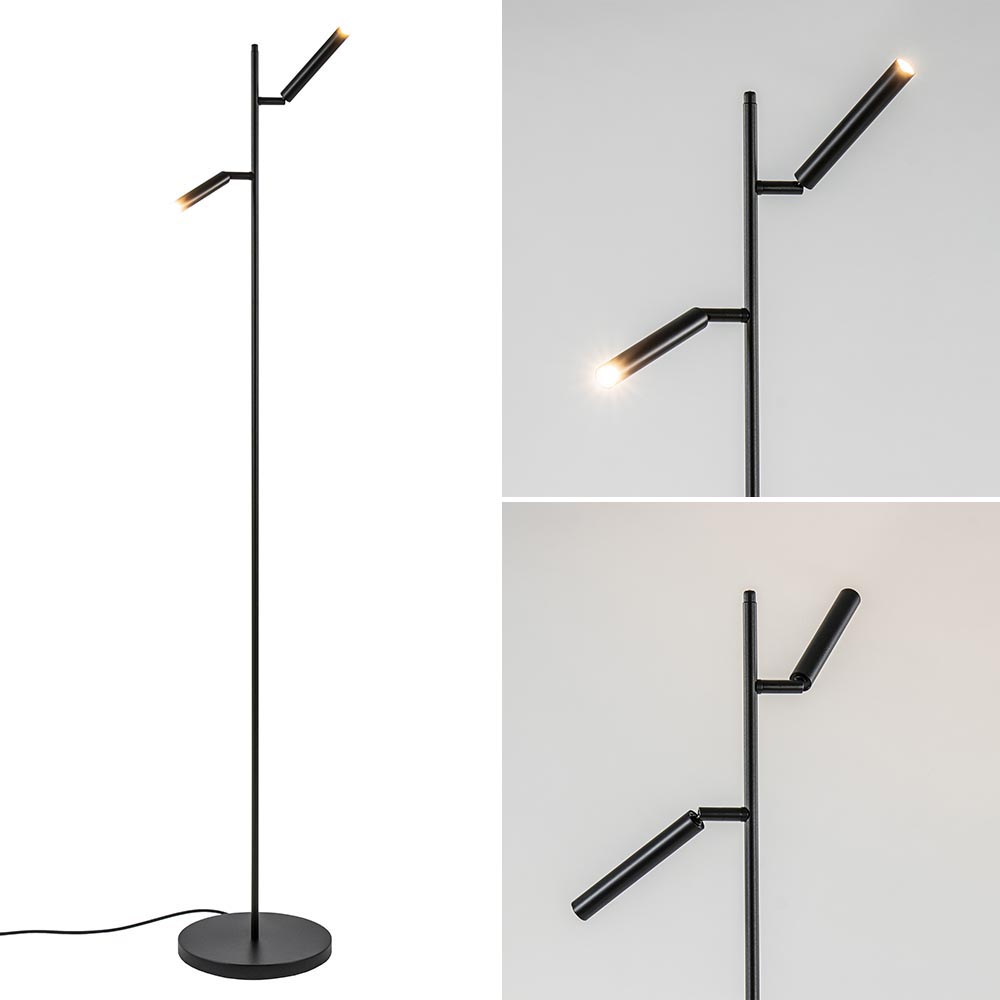 – hoogte: 154 cm – kappen: Ø2×15 cm – voet: Ø26×3,5 cm – metaal – zwart – inclusief LED – 2x 4,4W – 2200-2700 Kelvin – 2x 450 lumen – dimbaar, dim to warm – zwart snoer: 180 cm – verstelbaar
