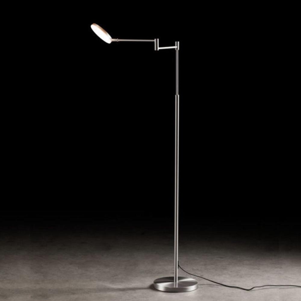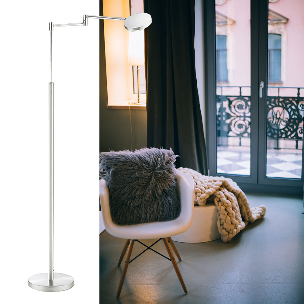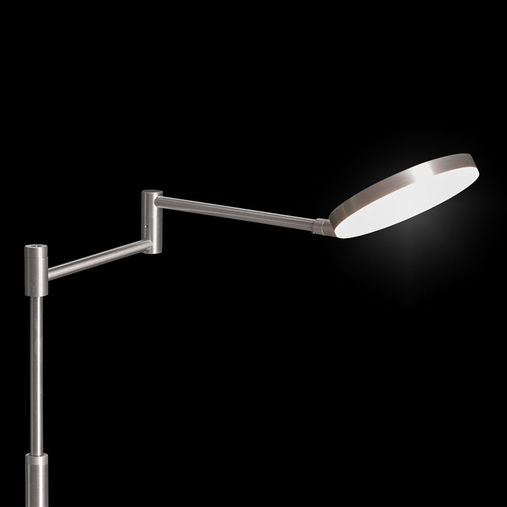 Deze energiezuinige LED vloerlamp is makkelijk te verstellen. Zowel in hoogte als met de draai-armen en de kop. Dit maakt dat deze lamp de perfecte leeslamp is naast uw favoriete fauteuil. Deze leeslamp, uitgevoerd in mat aluminium, is voorzien van een touchdimmer. Hiermee stelt u, traploos, de gewenste lichtsterkte in. De strakke vormgeving staat prachtig in een Scandinavisch, modern of design interieur.