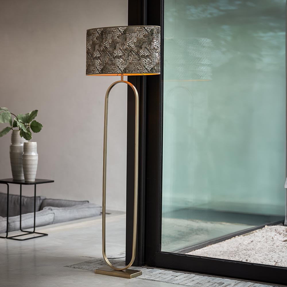 Modern en klassiek in één. Deze metalen lampvoet is in diverse woonstijlen toe te passen. De lampvoet met een licht gouden gloed kan met diverse kleuren kappen worden gecombineerd om zo de juiste stijl te creëren. Het ovale frame geeft de vloerlamp een chic randje. De vloerlamp is voorzien van een snoer van 200 CM en de schakelaar bevindt zich op 80 CM van het armatuur. De tafellamp wordt exclusief lichtbron (E27) en kap geleverd. Maak de vloerlamp helemaal af met een leuke kap (exclusief).