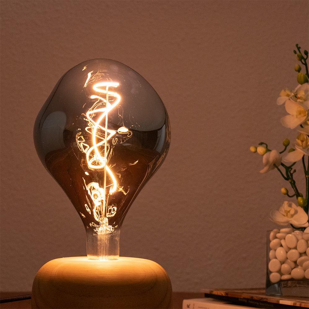 Een sfeervolle decoratieve lichtbron. De lichtbron heeft Titanium glas wat veranderd in smoke glas zodra de lamp wordt ingeschakeld.