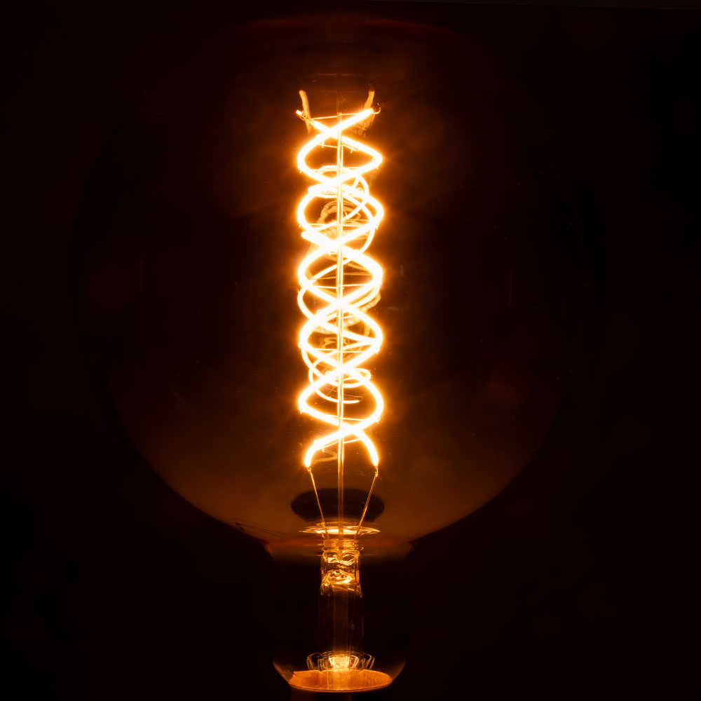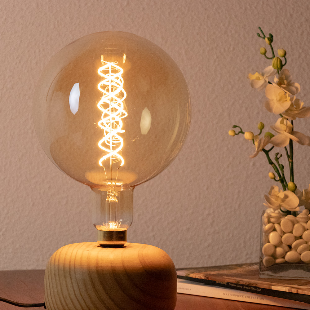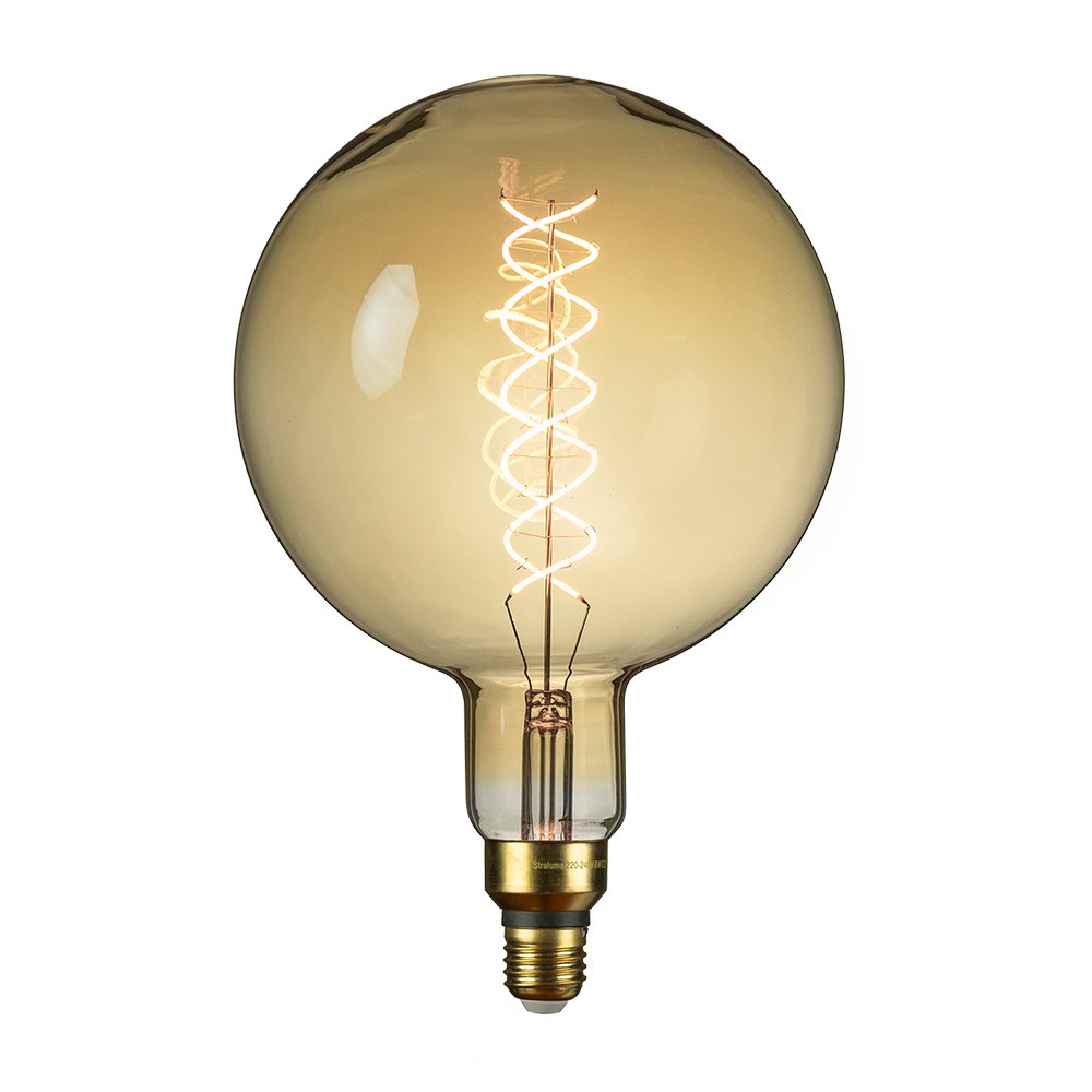Homepagina / Lichtbronnen / E27 Led Lampen / Lichtbron LED E27 – G200 | 2100K | 520lm | Dimbaar – Amber | Ø20cm