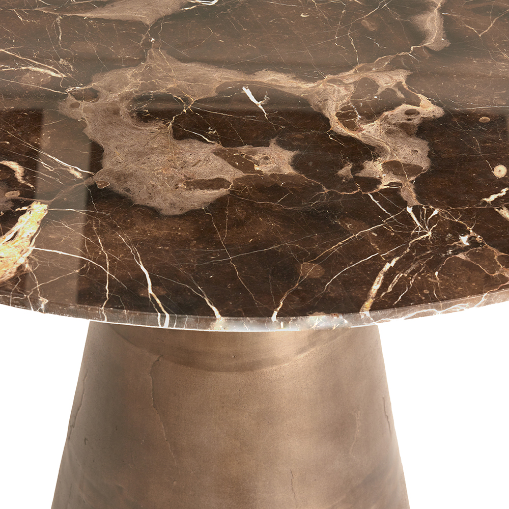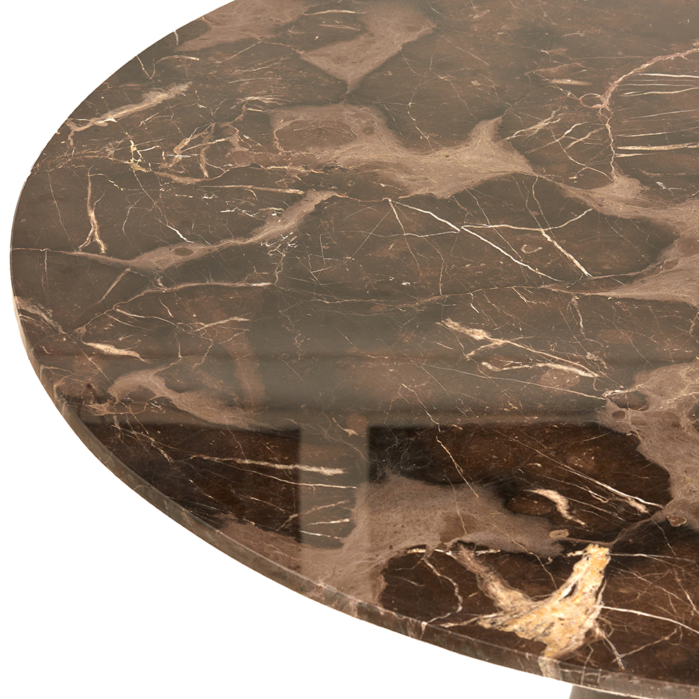 – afm: Ø120×78 cm – bruin marmer – metalen poot, bruin – gewicht: 107 kg