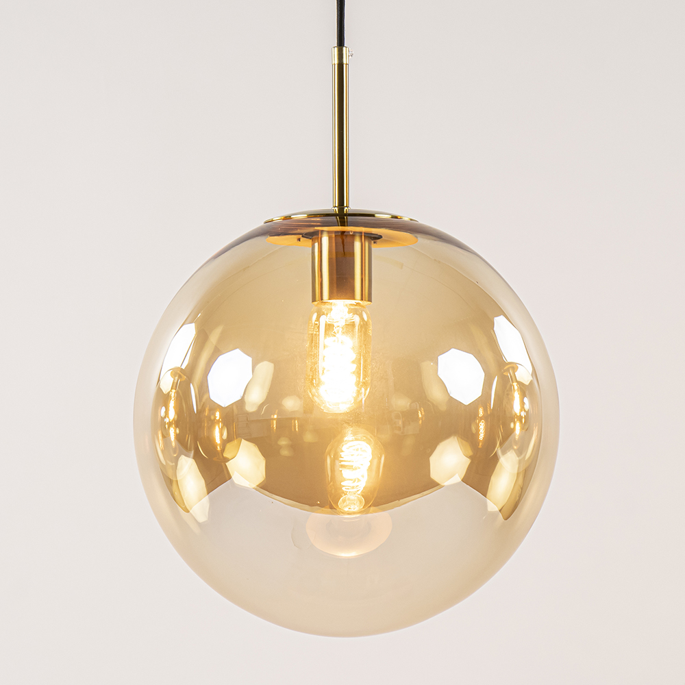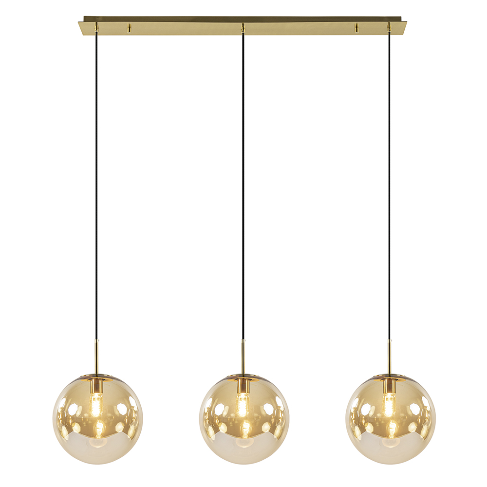 Homepagina / Lampen / Eettafellampen / Light and Living hanglamp Medina 3L goud met amber glas