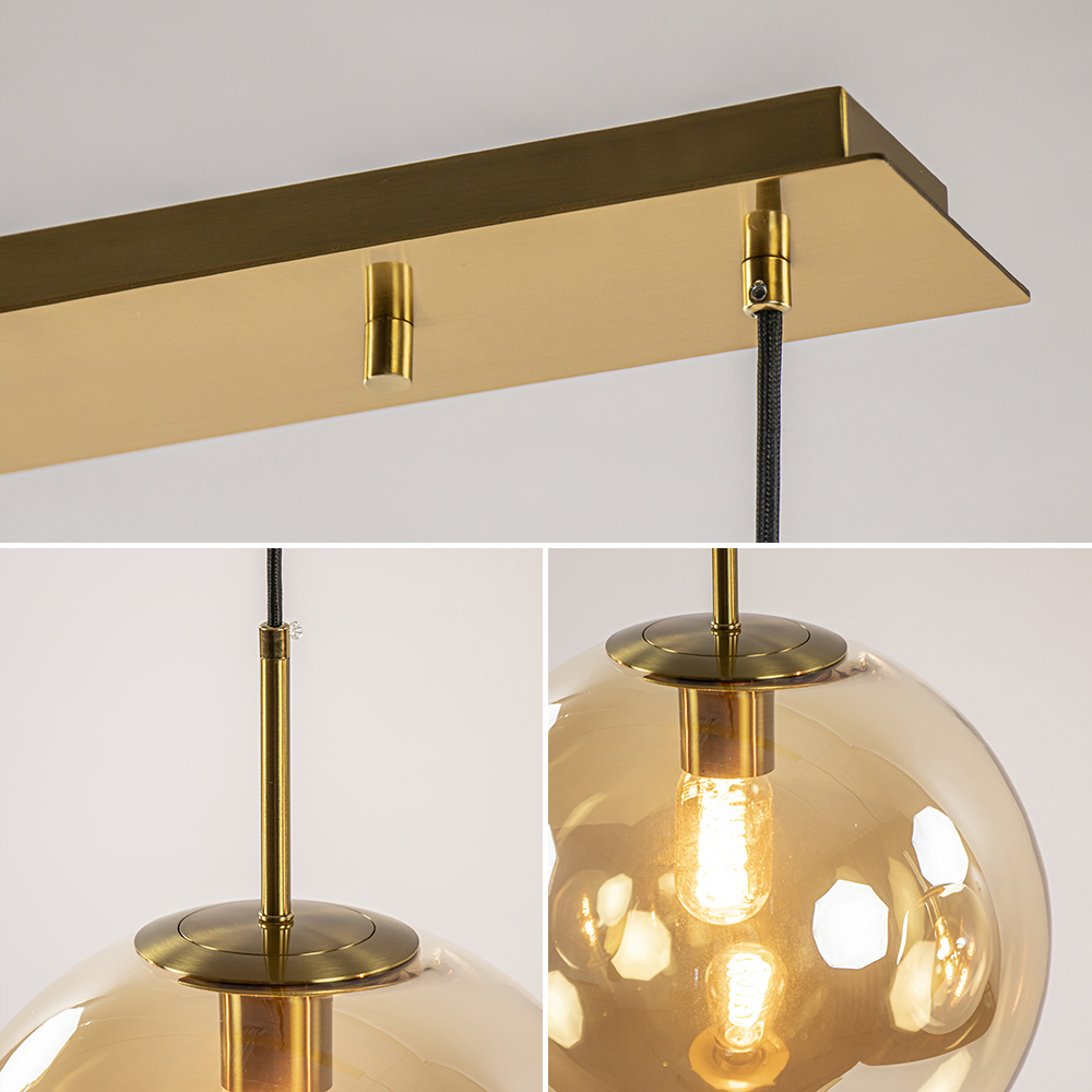 Deze prachtige hanglamp van Light and Living is een verrijking voor het interieur. Hanglamp Medina heeft een retro klassieke look in een modern en trendy jasje. De 3-lichts hanglamp heeft een gouden armatuur dat is gecombineerd met amber glazen bollen. Het amber glas geeft een warme en sfeervolle uitstraling aan het interieur. De kappen worden met schroefdraad bevestigd op de fittingen. De gouden bollen zijn naar wens op hoogte te hangen met een maximale hoogte van 145 cm. Hanglamp Medina van Light and Living is dimbaar middels een externe dimmer (exclusief) en wordt geleverd exclusief lichtbronnen.