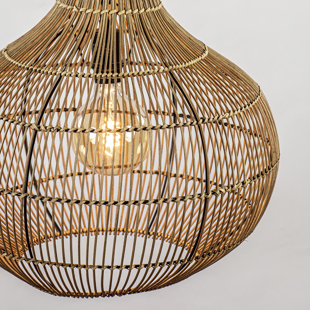 – hoogte: 158 cm – kap: Ø50×50,5 cm – bevestiging: Ø10×2,5 cm – rotan, donker bruin – metaal, zwart – exclusief lichtbron (E27) – dimbaar (exclusief)