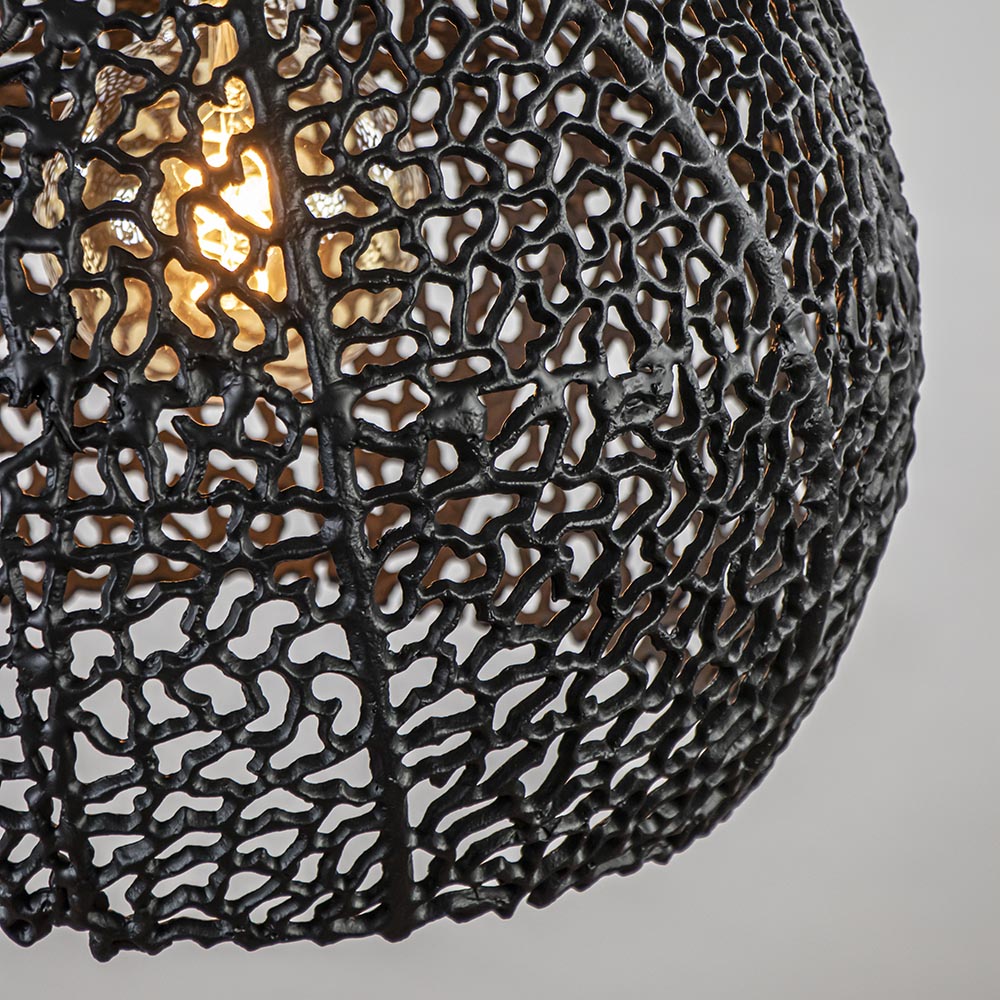 Sinula is een mooie hanglamp die prima geschikt is voor diverse woonruimtes. De hanglamp doet denken aan de nerven van een blad of koraal en krijgt zo een botanische look. De ronde kap van 45 cm doorsnede hangt aan een stevige metalen ketting welke naar wens is in te korten. De maximale hoogte van hanglamp Sinula is 125 cm. De mat zwarte hanglamp van Light and Living heeft een open structuur, een decoratieve lichtbron past dan ook mooi in de lamp. De hanglamp Sinula is dimbaar middels een externe dimmer (exclusief).