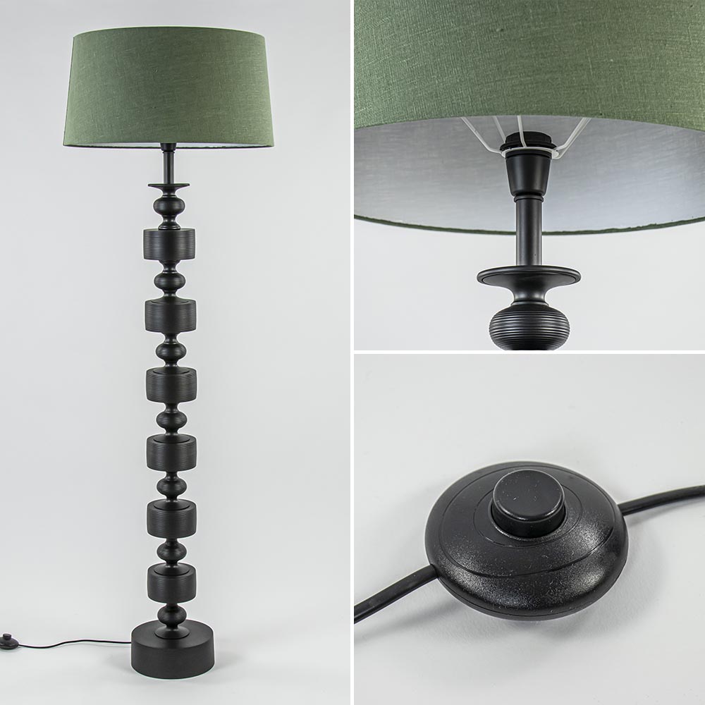 Deze lampvoet is een mooie toevoeging aan diverse woonstijlen. De vloerlamp is gemaakt van metaal en uitgevoerd in het mat zwart. De staande lamp heeft een speelse vorm en is over de gehele voet voorzien van een reliëf. Lampvoet Gody van Light and Living is voorzien van een E27 fitting en een zwart snoer van 195 cm. Het snoer is voorzien van een voetschakelaar op 40 cm van de voet. Vloerlamp Gody wordt geleverd zonder kap en zonder lichtbron.