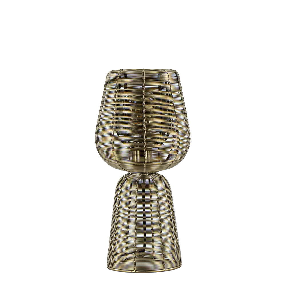 Tafellamp Aboso van Light and Living zorgt voor stijl en functie. De metalen draadlamp is uitgevoerd in het goud wat de lamp een trendy look geeft. In het bovenste gedeelte is de lamp voorzien van een E27 fitting. Door de open structuur laat de tafellamp prima licht door zodat er een sfeervolle en fijne lichtverspreiding ontstaat. Aboso van Light van Living is voorzien van een zwart snoer met een lengte van 170 cm en wordt geleverd exclusief lichtbron.